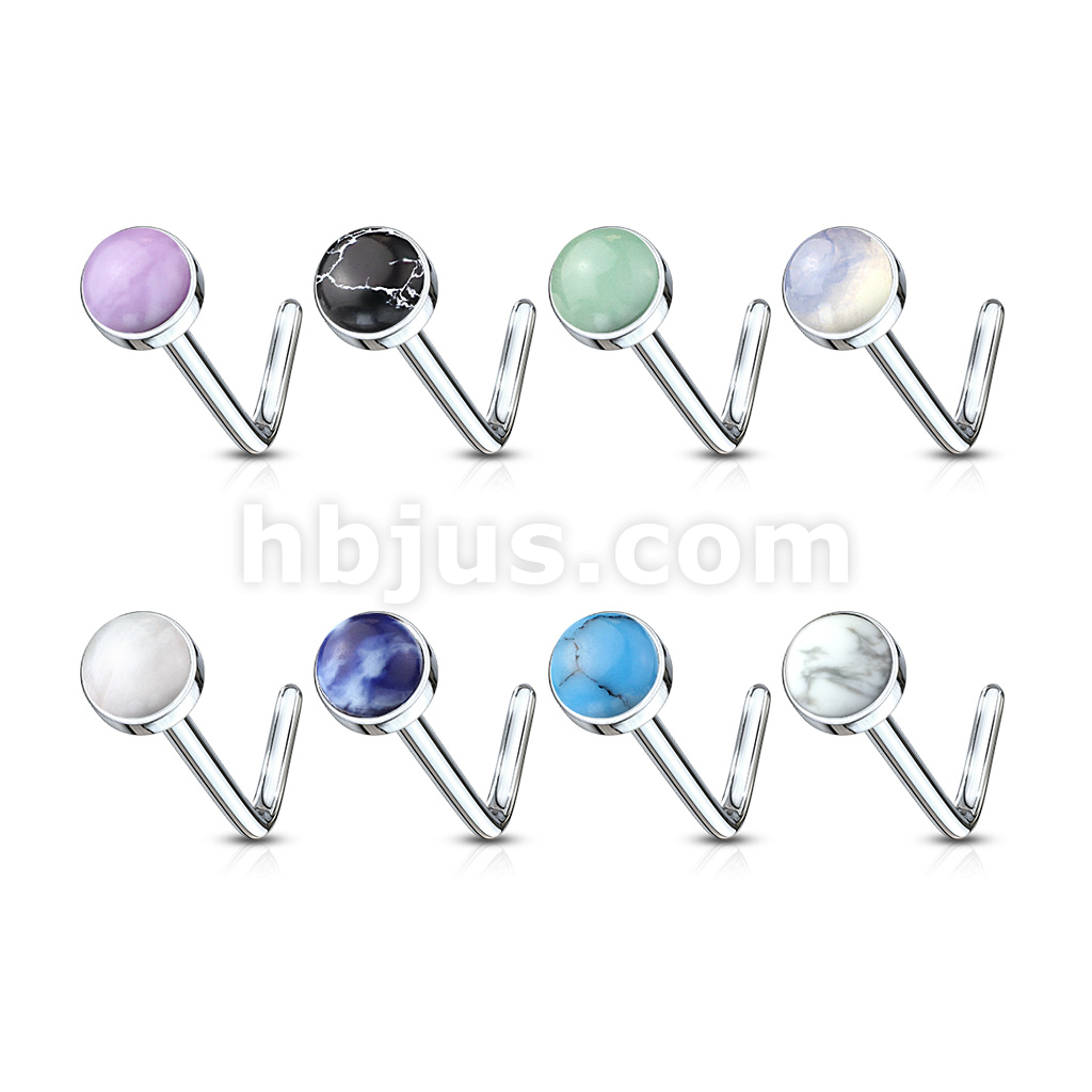 8 pcs Value Pack Semi Precious Stone Set 316L Surgical Steel L Bend Nose Stud Rings