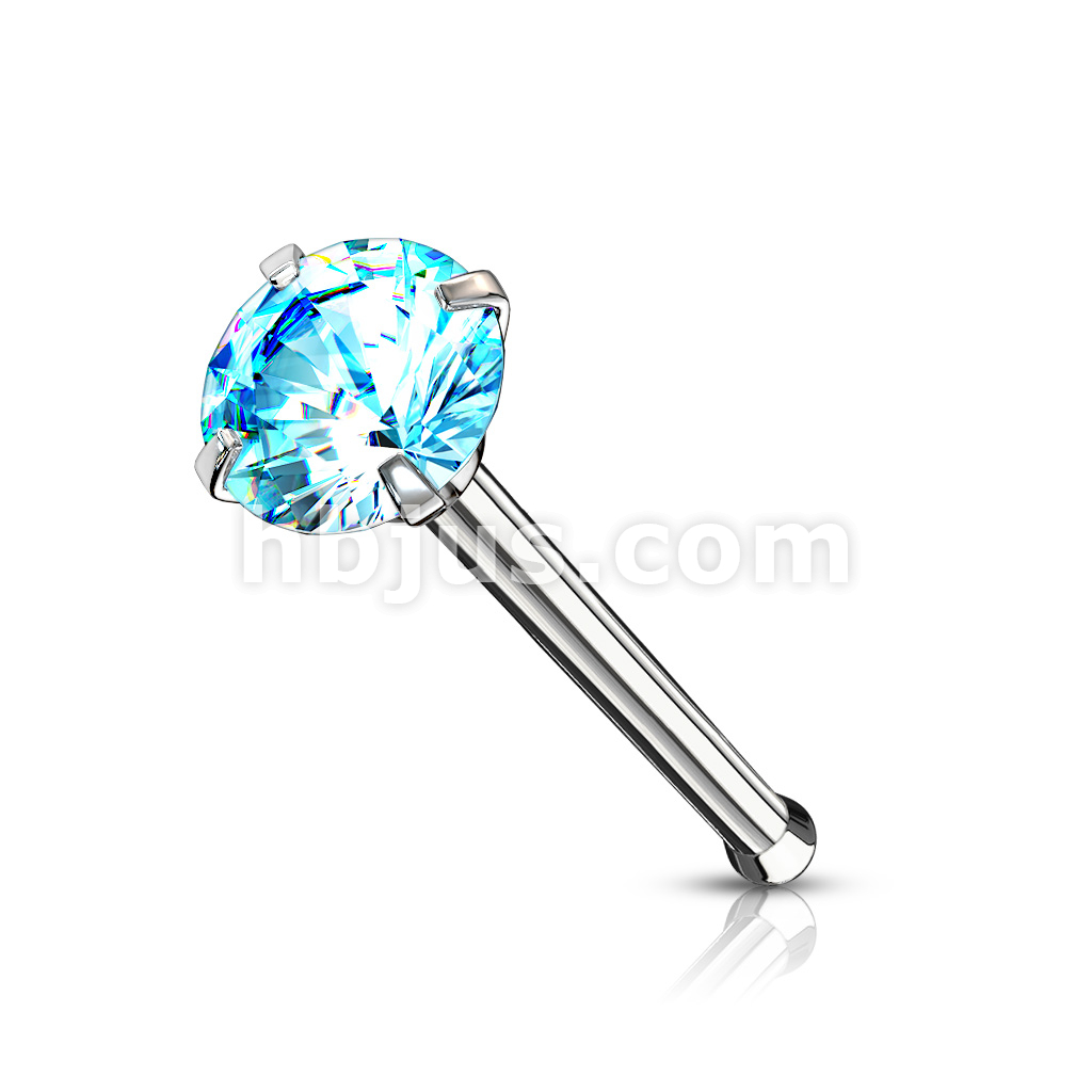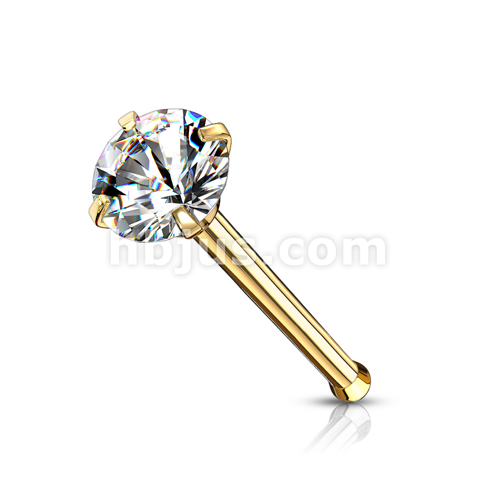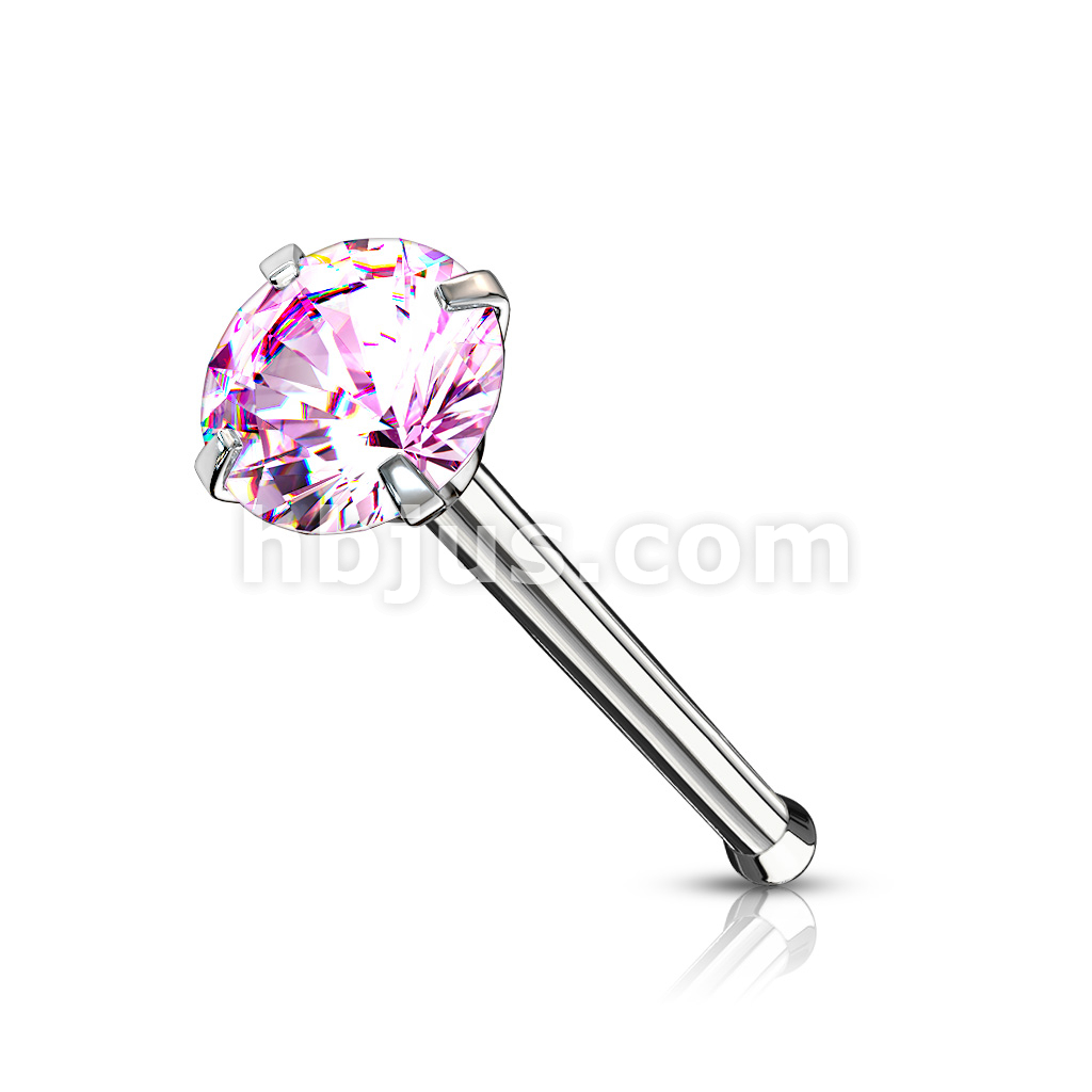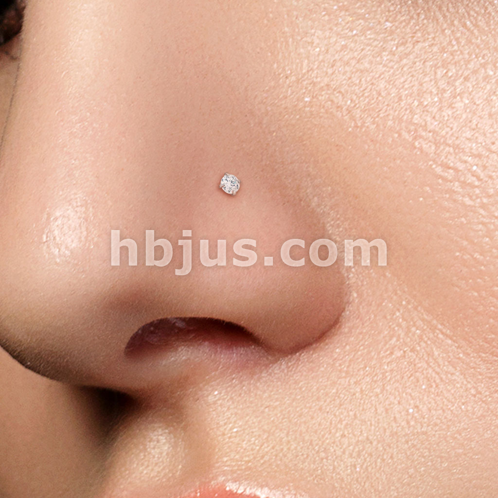 Prong Set Round CZ Top 316L Surgical Steel Nose Bone Stud Rings