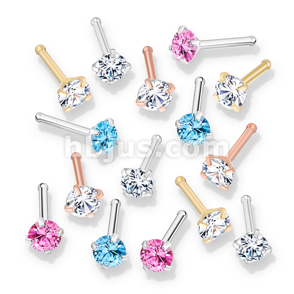100 Pcs Prong Set Round CZ Top PVD over 316L Surgical Steel Nose Bone Stud Rings (20 Pcs x 5 Colors)