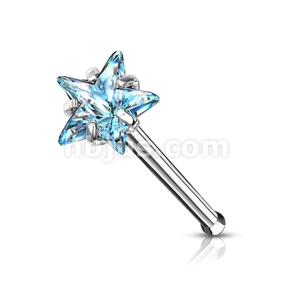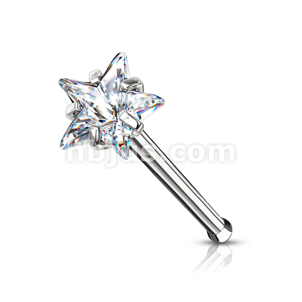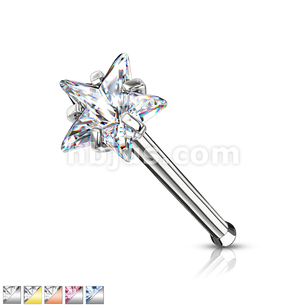 Prong Set Star CZ Top 316L Surgical Steel Nose Bone Stud Rings