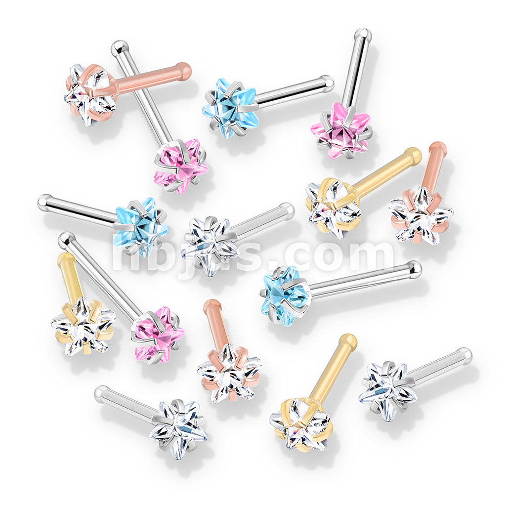 100 Pcs Prong Set Star CZ Top PVD over 316L Surgical Steel Nose Bone Stud Rings (20 Pcs x 5 Colors)