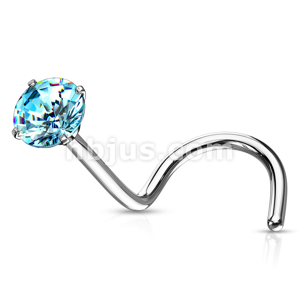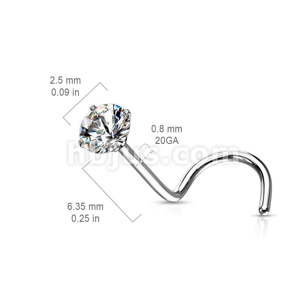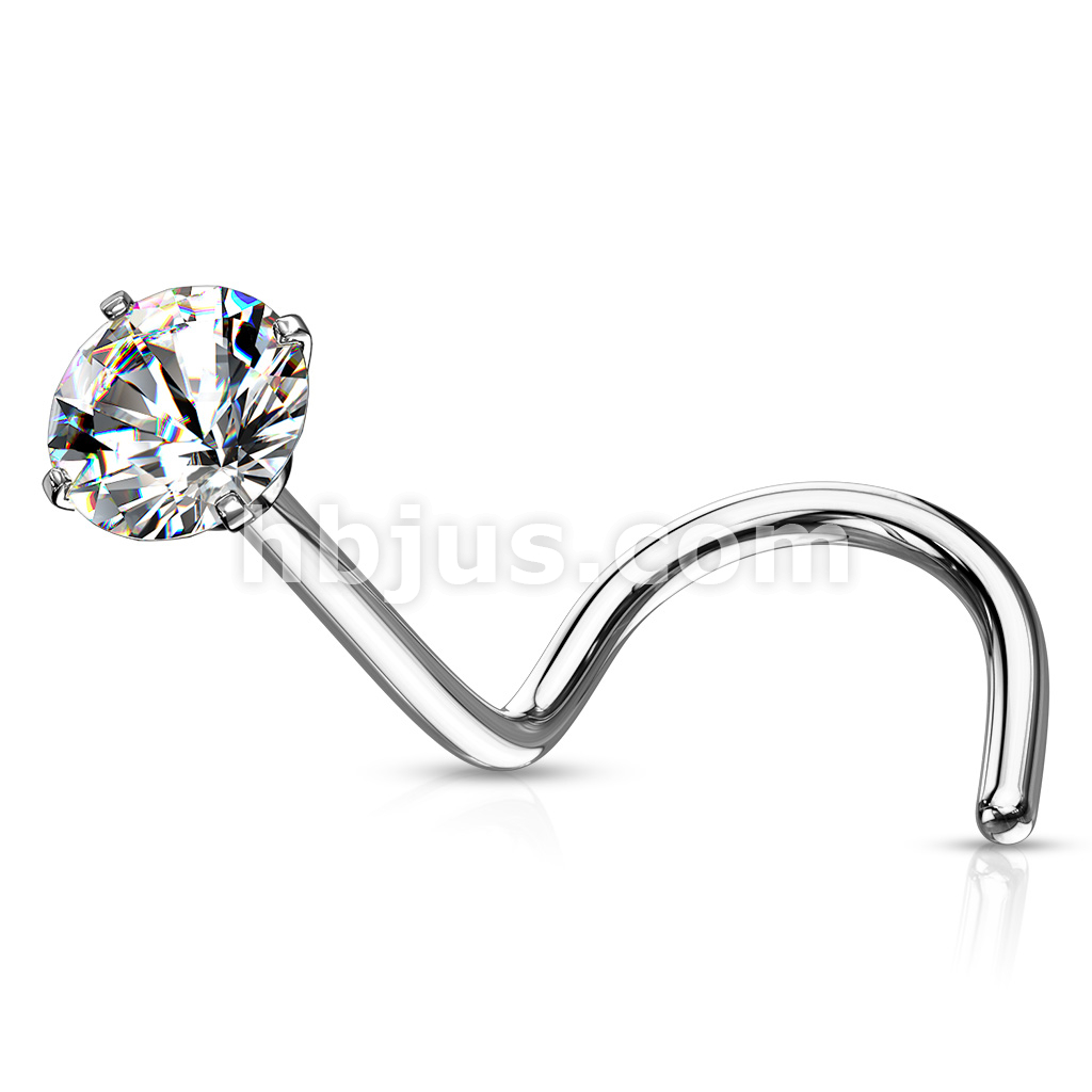 Prong Set Round CZ Top 316L Surgical Steel Nose Screw Rings