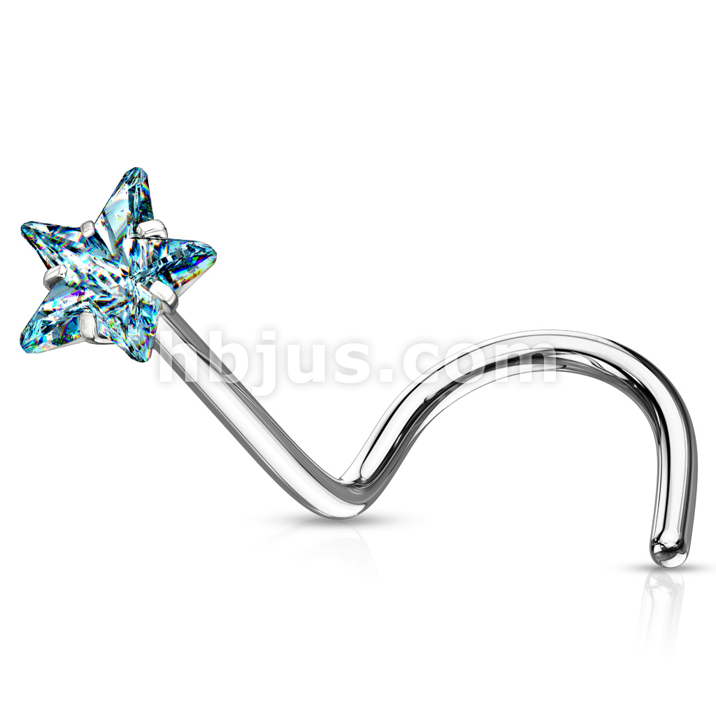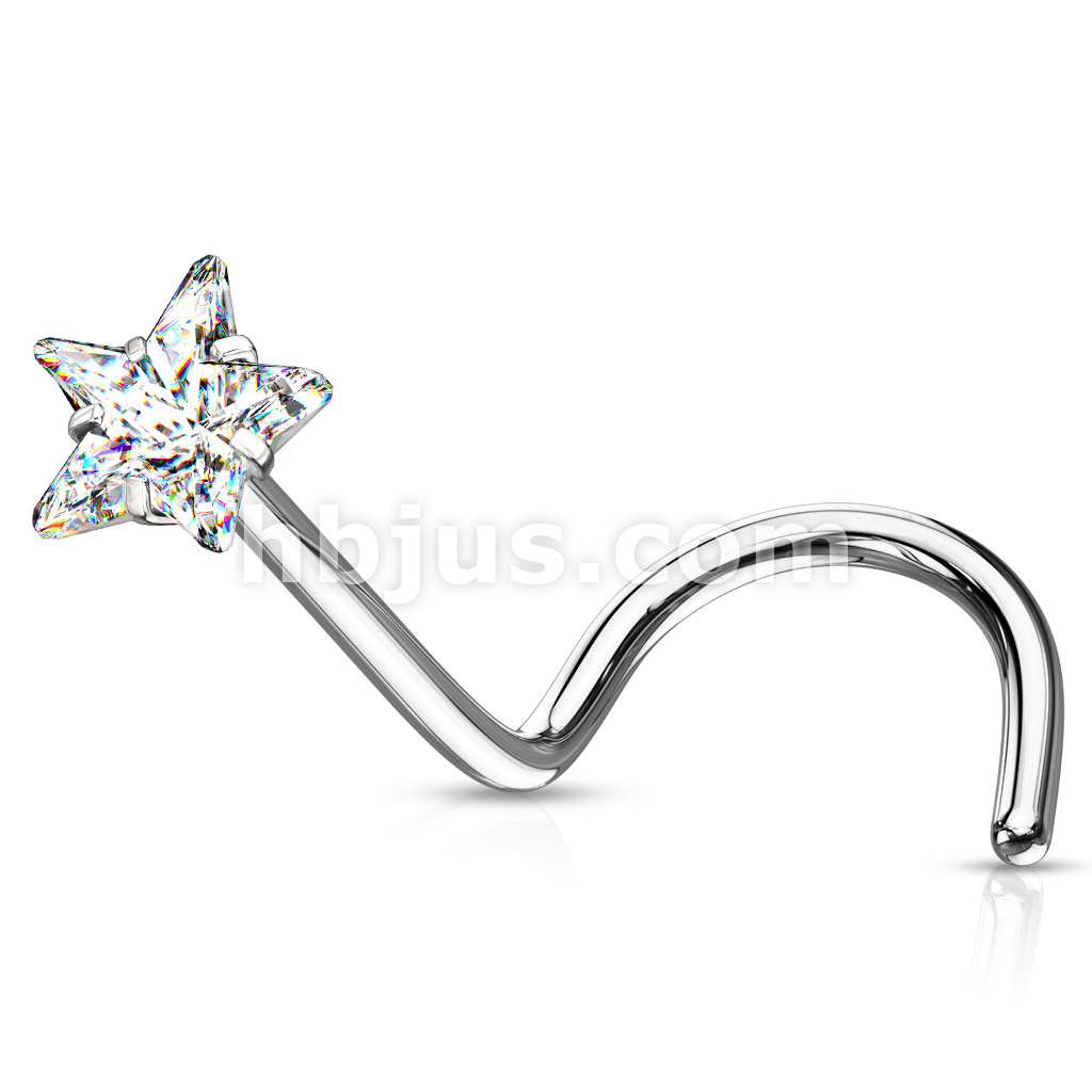 Prong Set Star CZ Top 316L Surgical Steel Nose Screw Rings