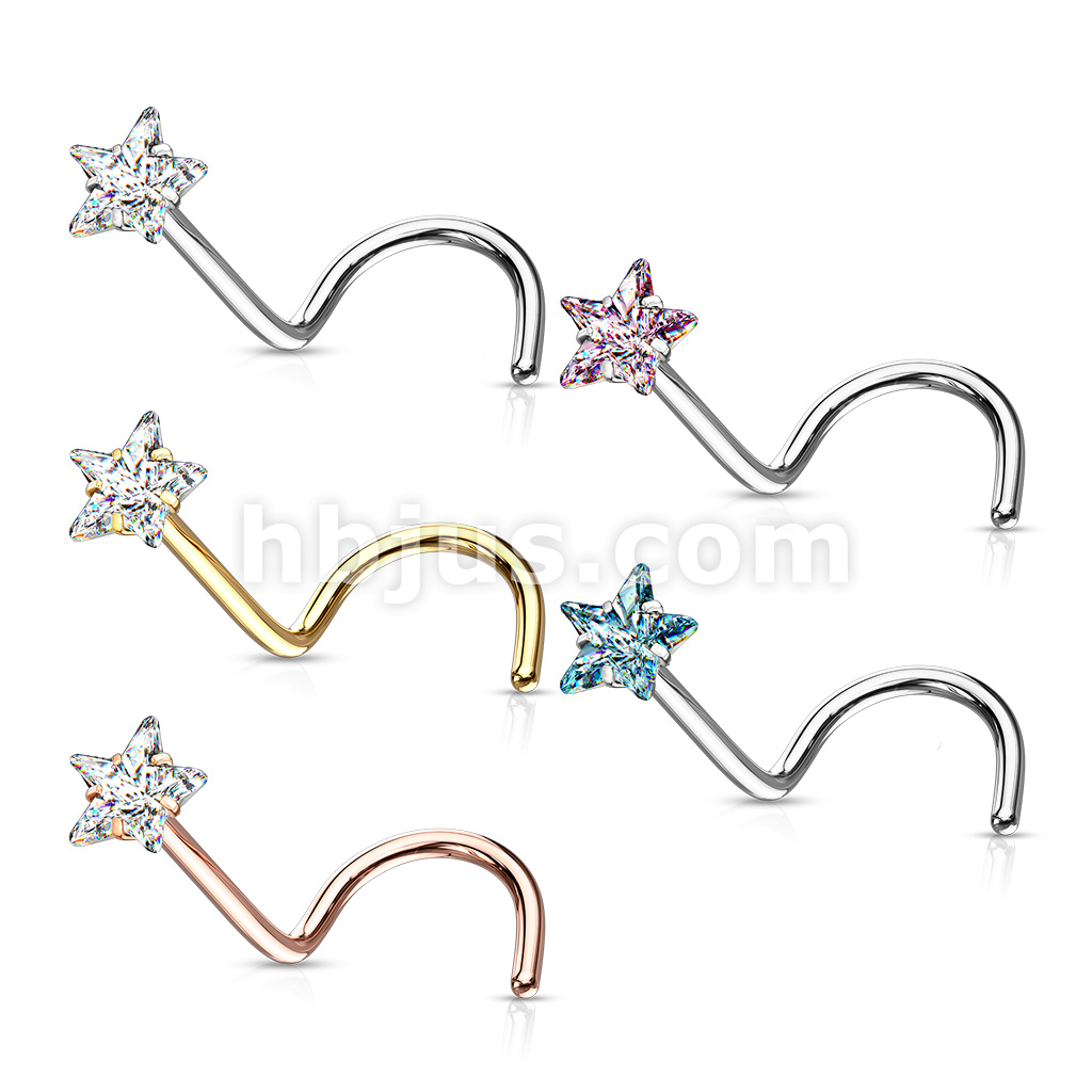 100 Pcs Prong Set Star CZ Top PVD over 316L Surgical Steel Nose Screw Rings (20 Pcs x 5 Colors)