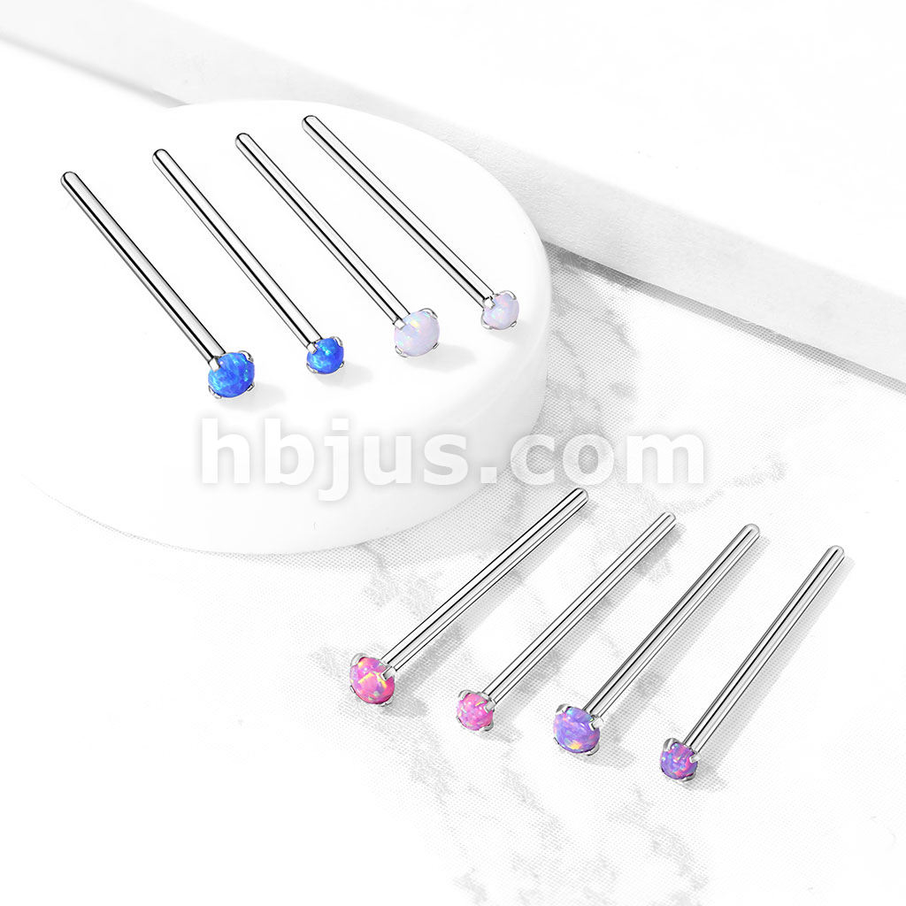 Opal Prong Set 316L Surgical Steel Fishtail Nose Rings