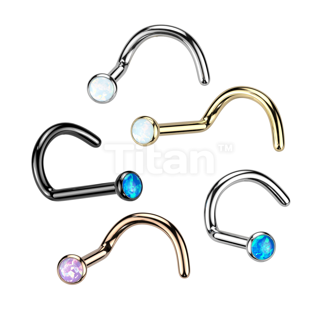 Implant Grade Titanium Bezel Set Opal Ball Top Nose Screw