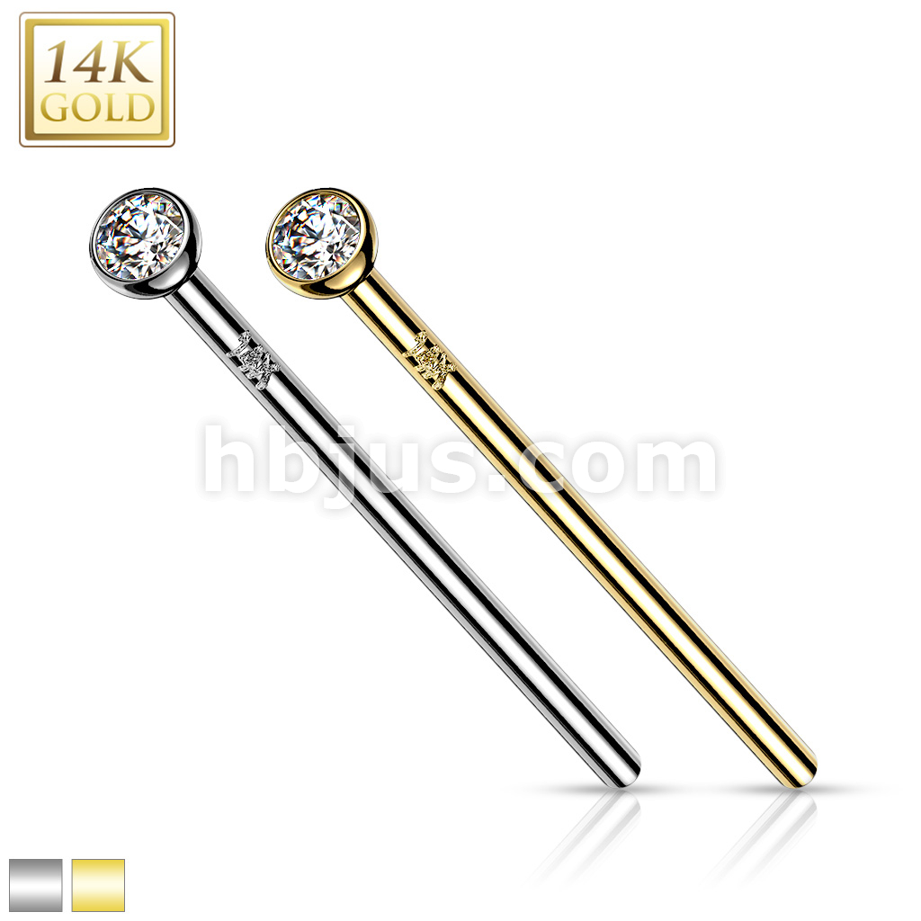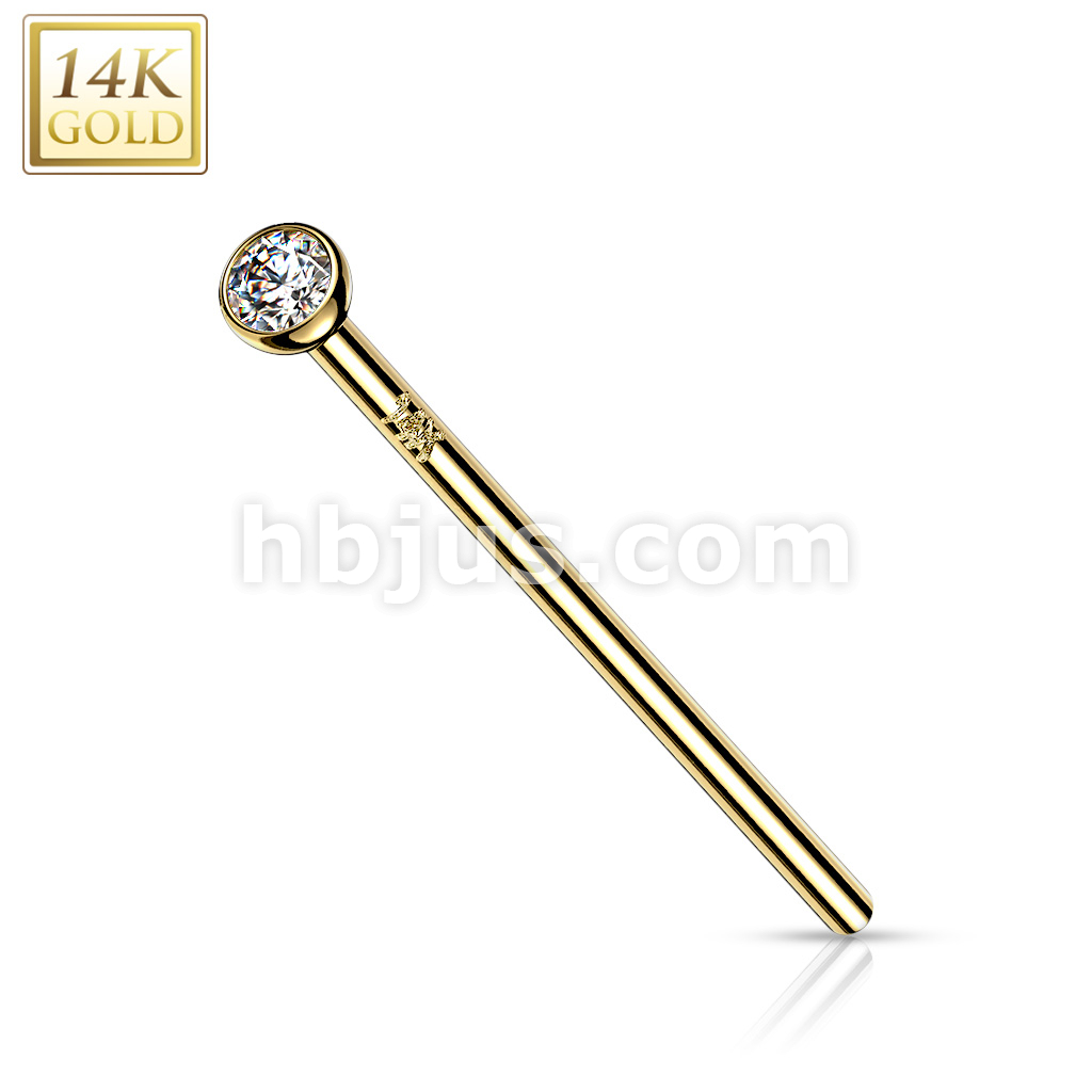 14K Gold Bezel Set CZ Fishtail Nose Rings