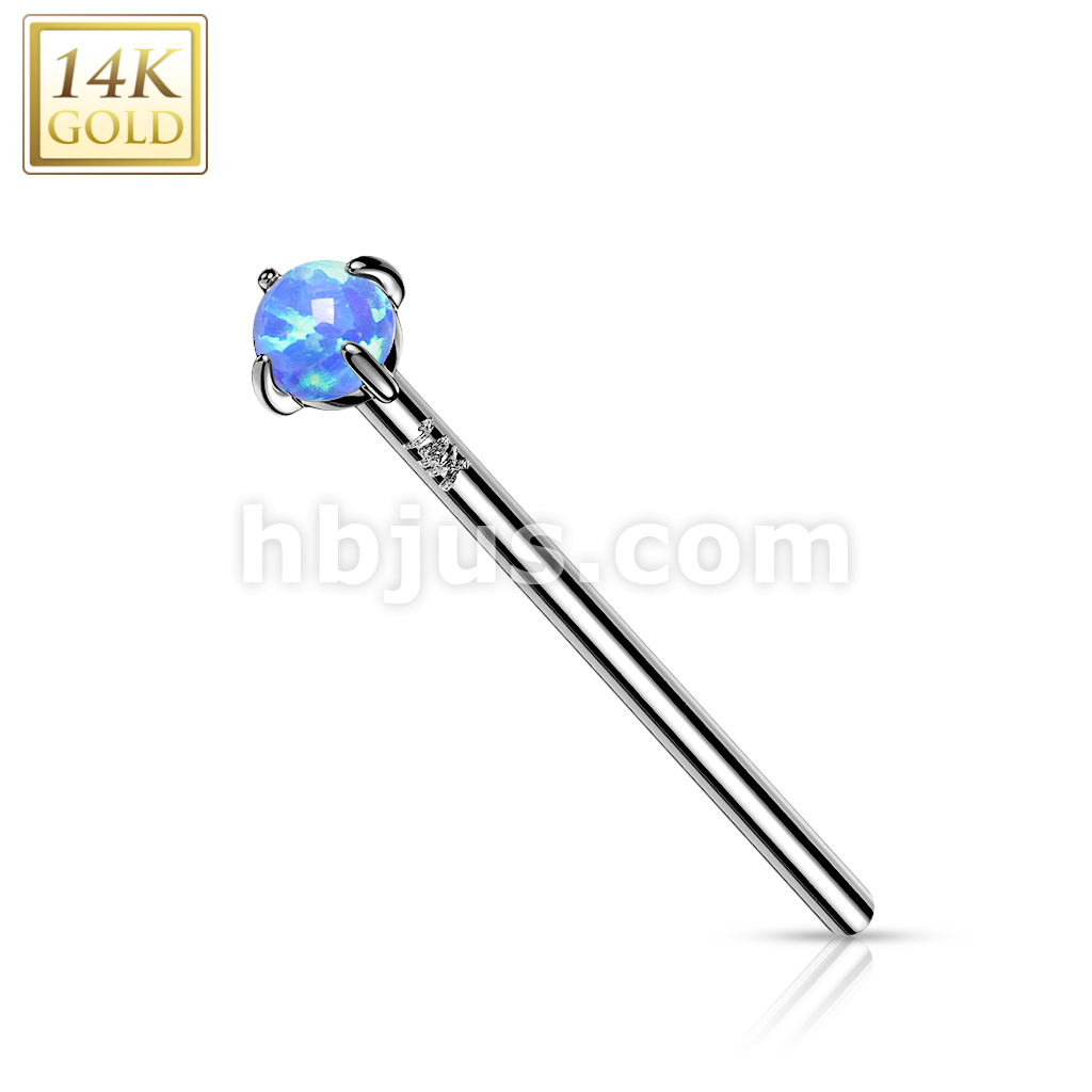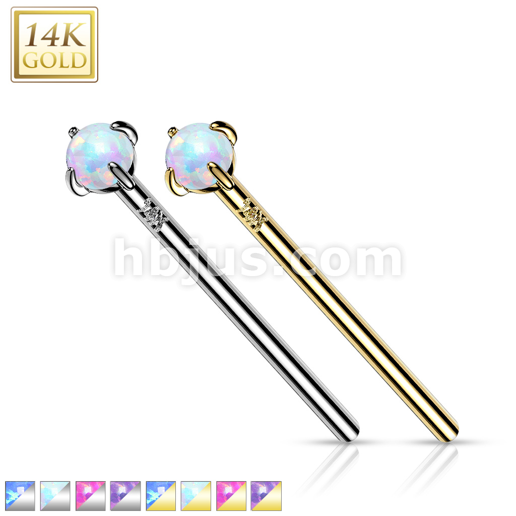 14K Gold Prong Set Opal Fishtail Nose Rings