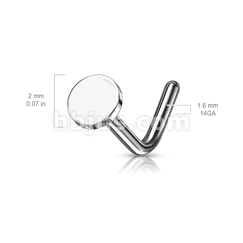 Circular Flat Top 316L Surgical Steel "L" Bend Nose Stud Rings