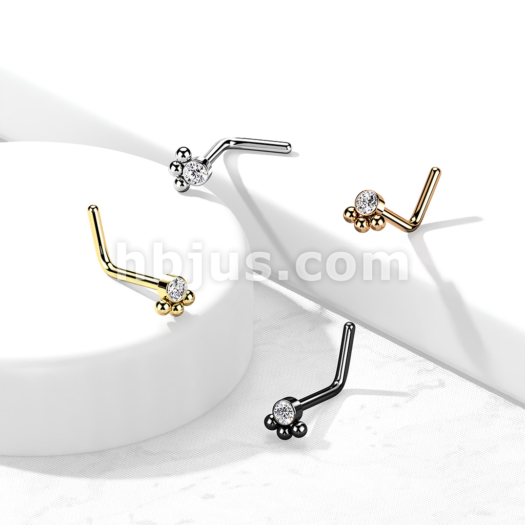 3 Beaded Ball Cluster with CZ Center 316L Surgical Steel "L" Bend Nose Stud Ring
