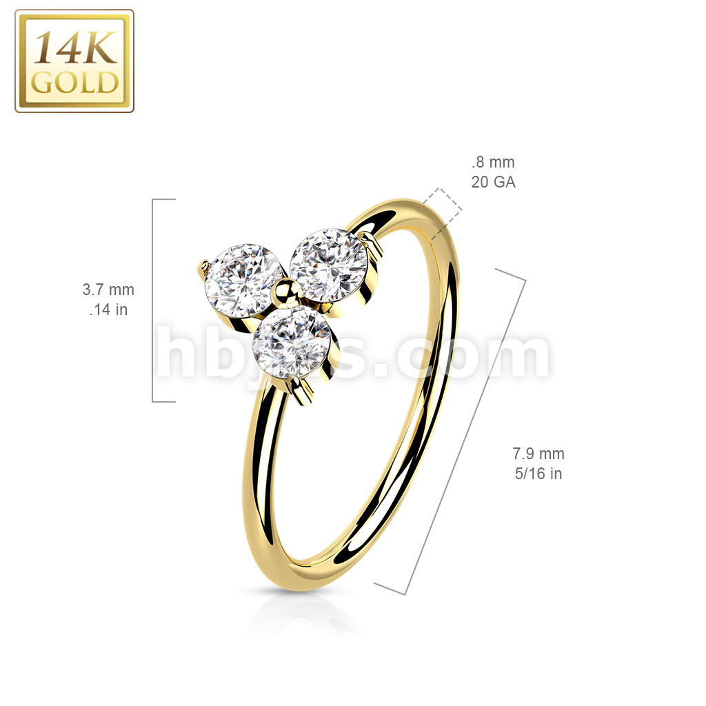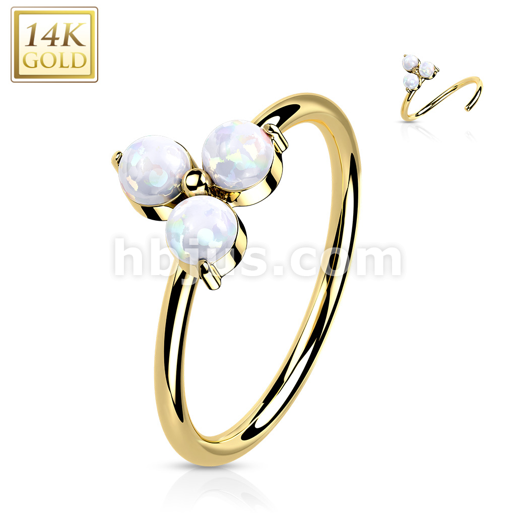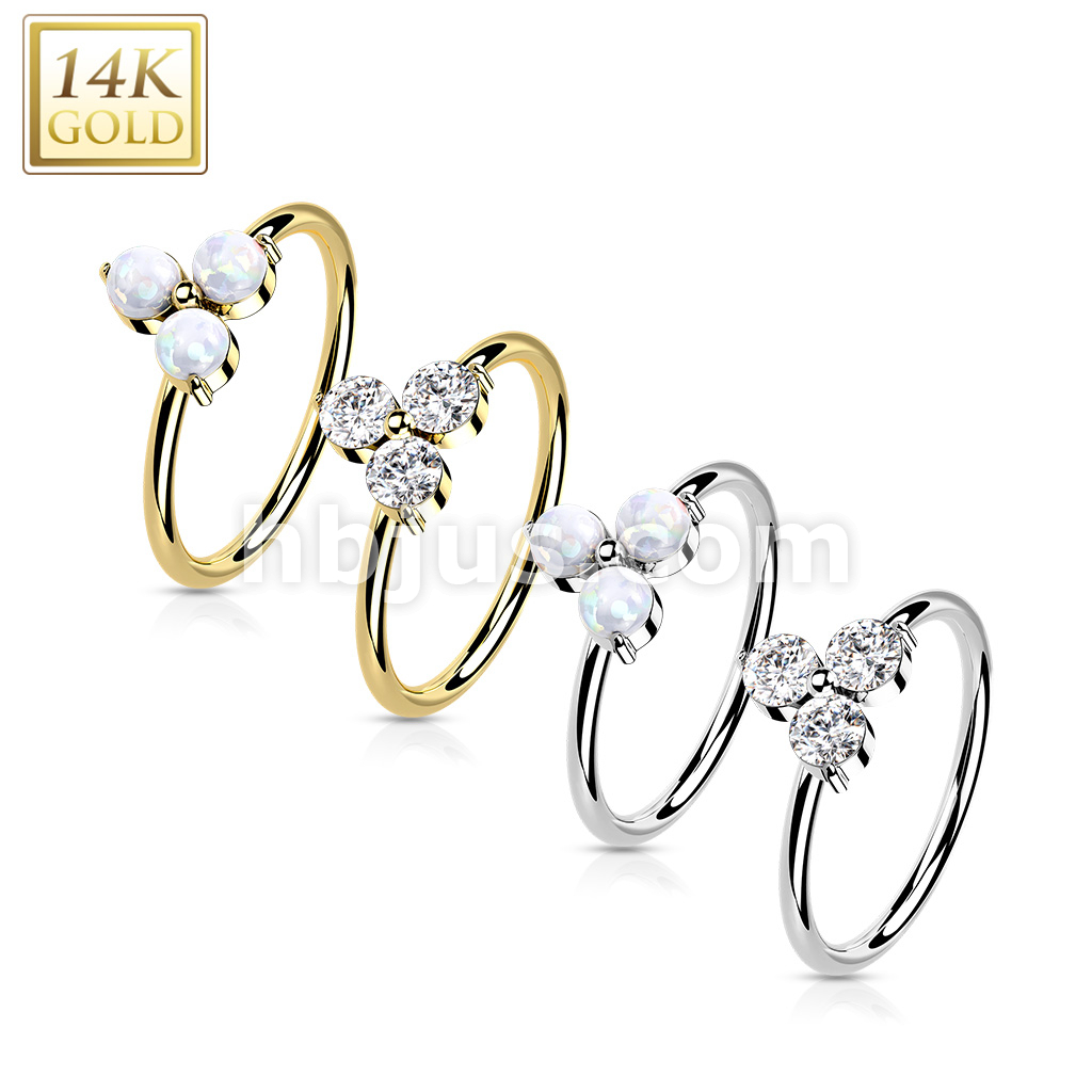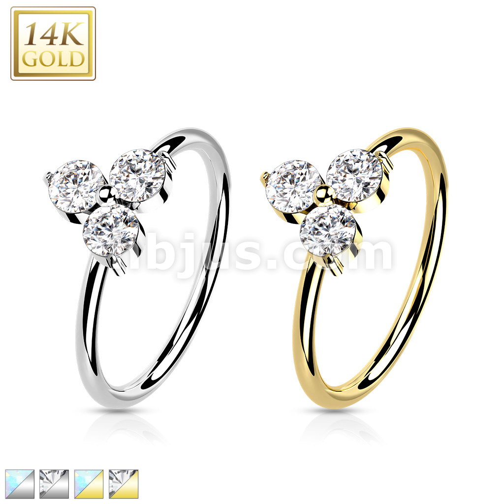 14K Gold 3 Opal or CZ Triangle Set Nose Hoop