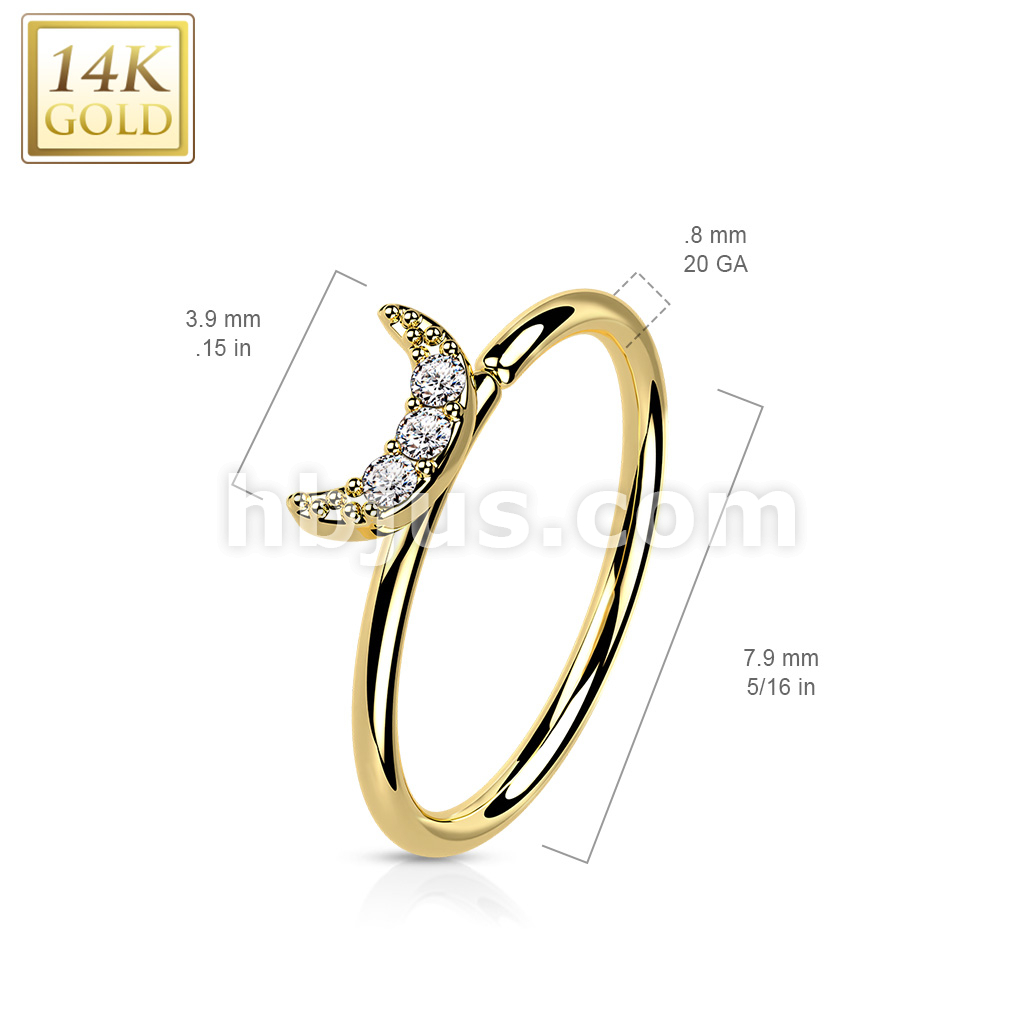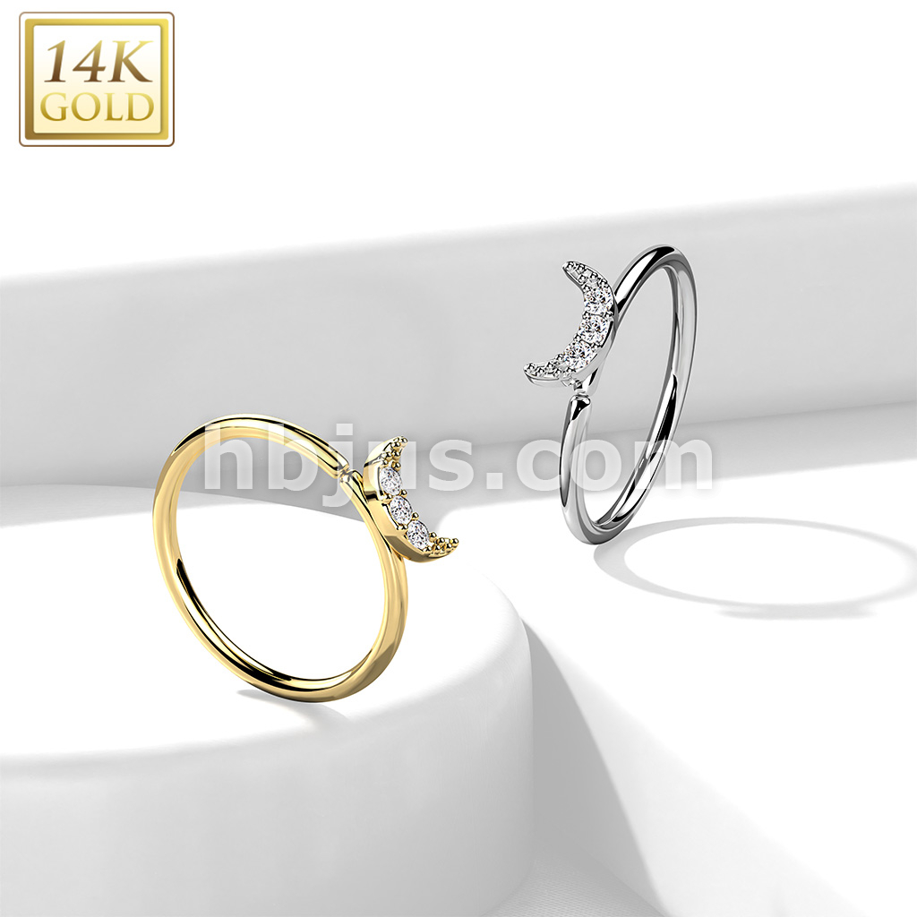 14K Gold CZ Paved Crescent Moon Nose Hoop