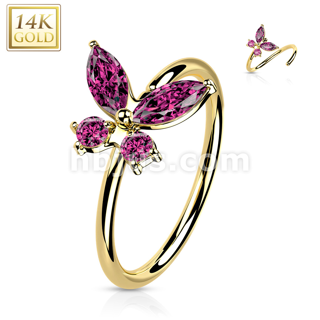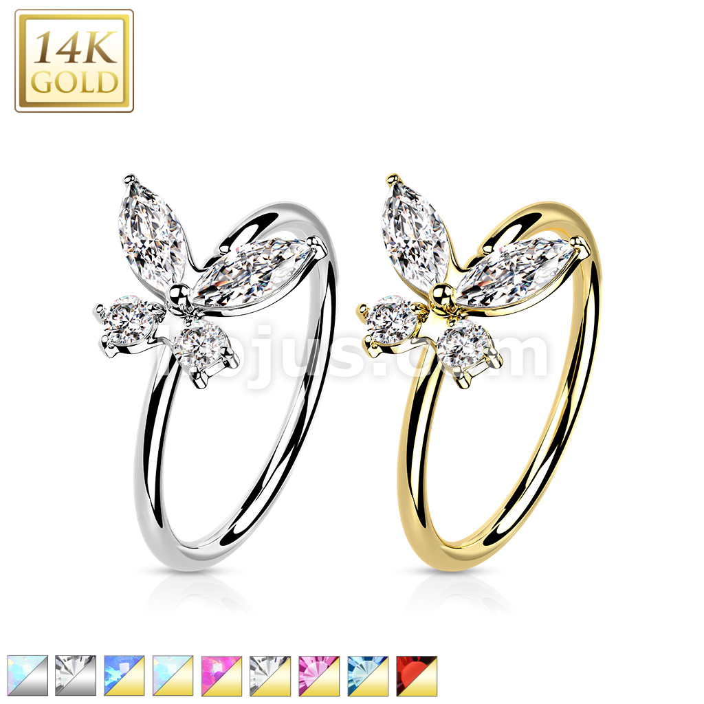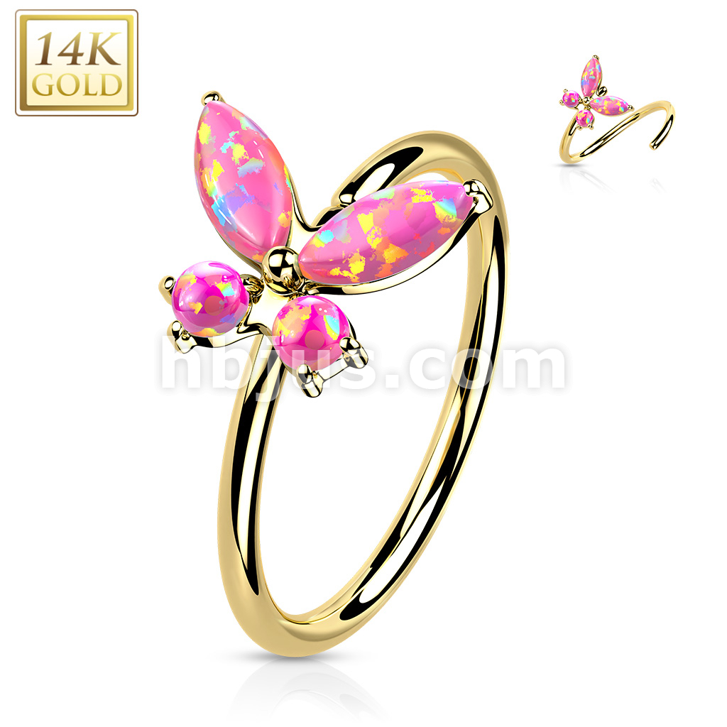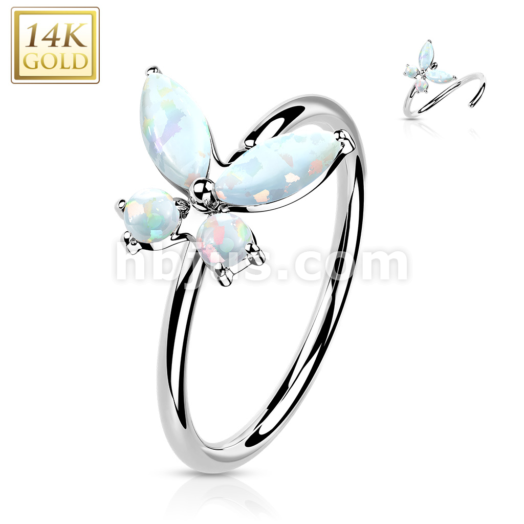 14K Gold Opal or CZ Butterfly Nose Hoop