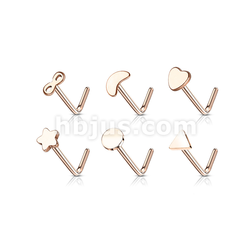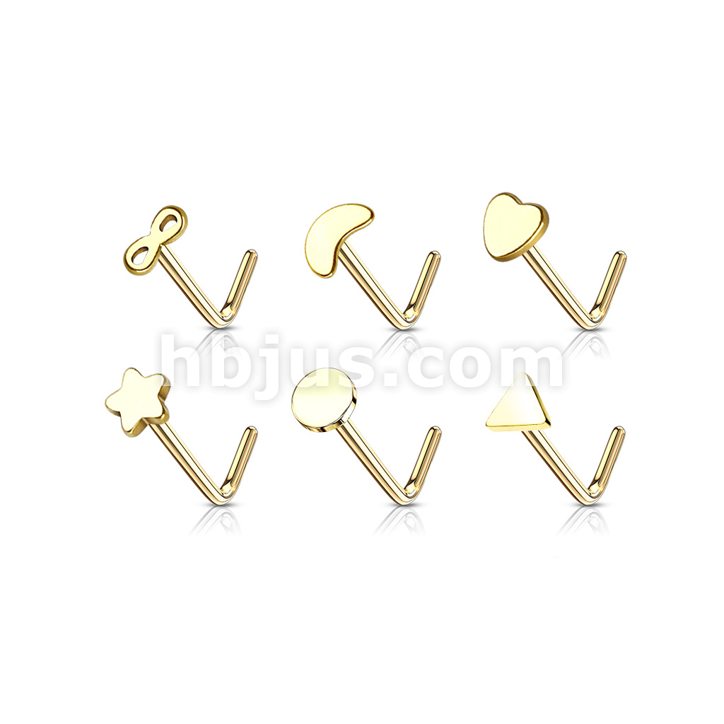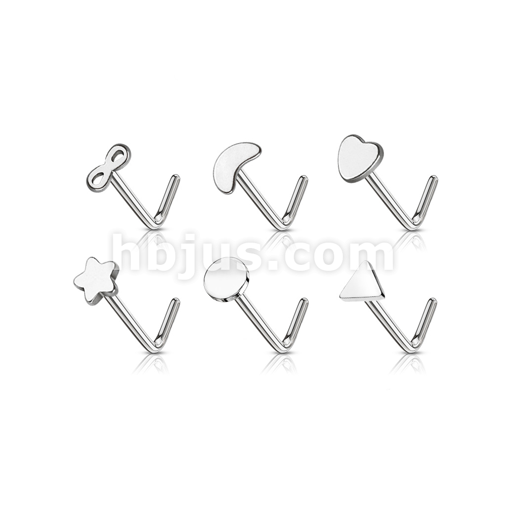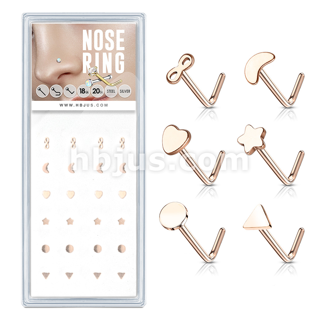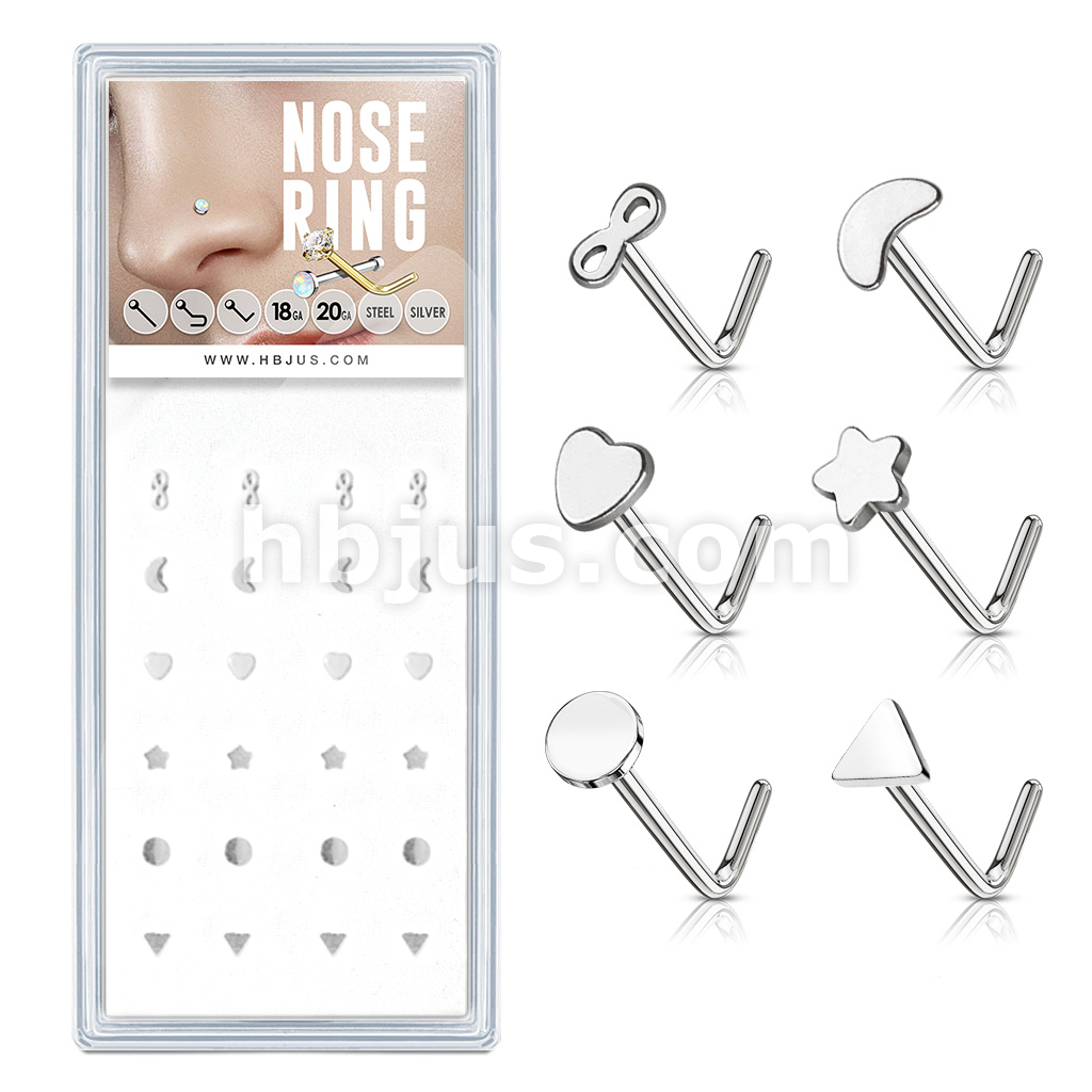 24 Pcs Assorted Shapes "L" Bend 316L Surgical Steel Nose Stud Rings Package