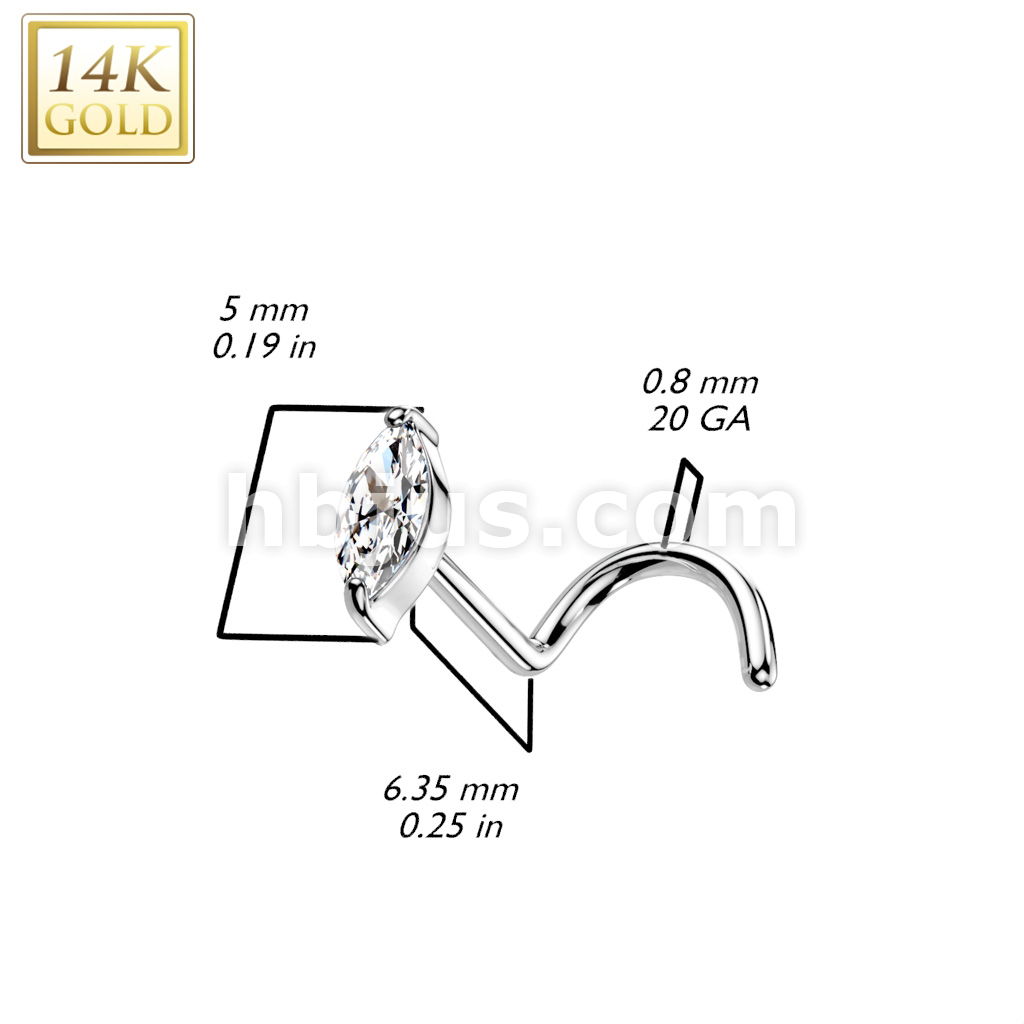14K Gold Nose Screw Rings With Marquise CZ Top