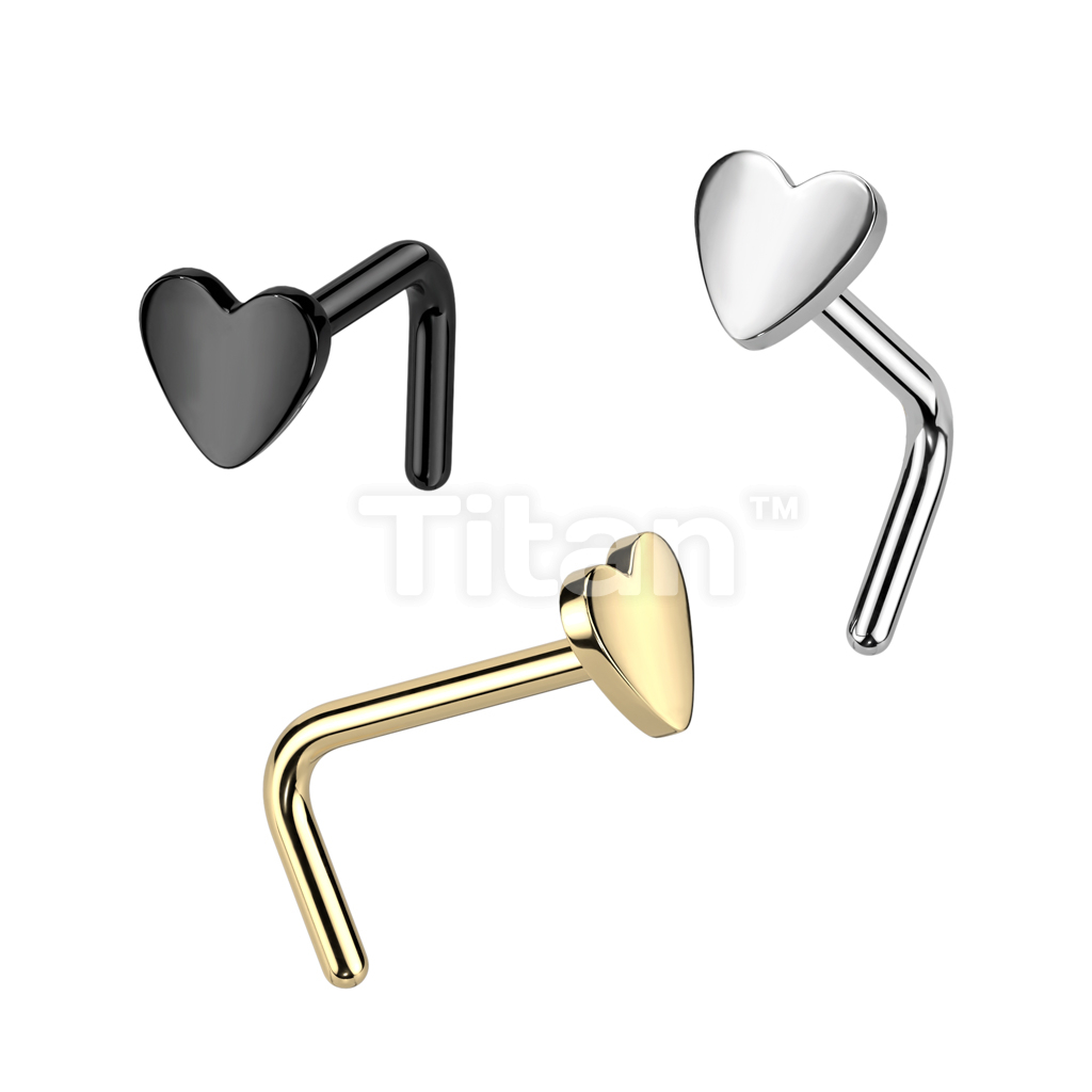 Implant Grade Titanium L Bend Nose Ring With Flat Heart Top