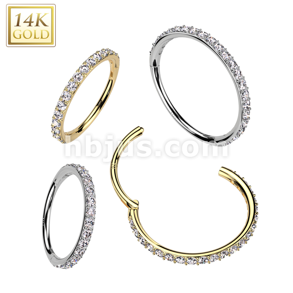 14K Gold Hinged Segment Hoop Ring in 20ga With Outward Facing Pave CZ