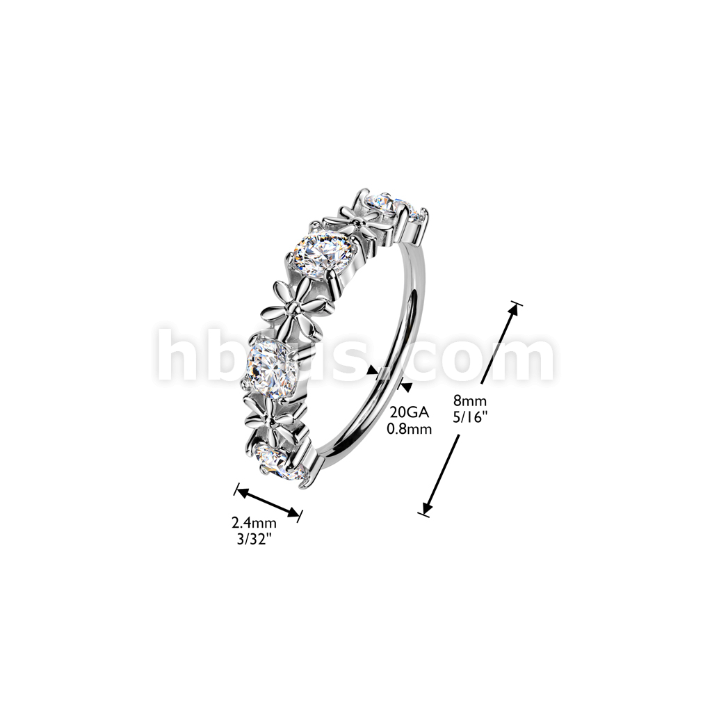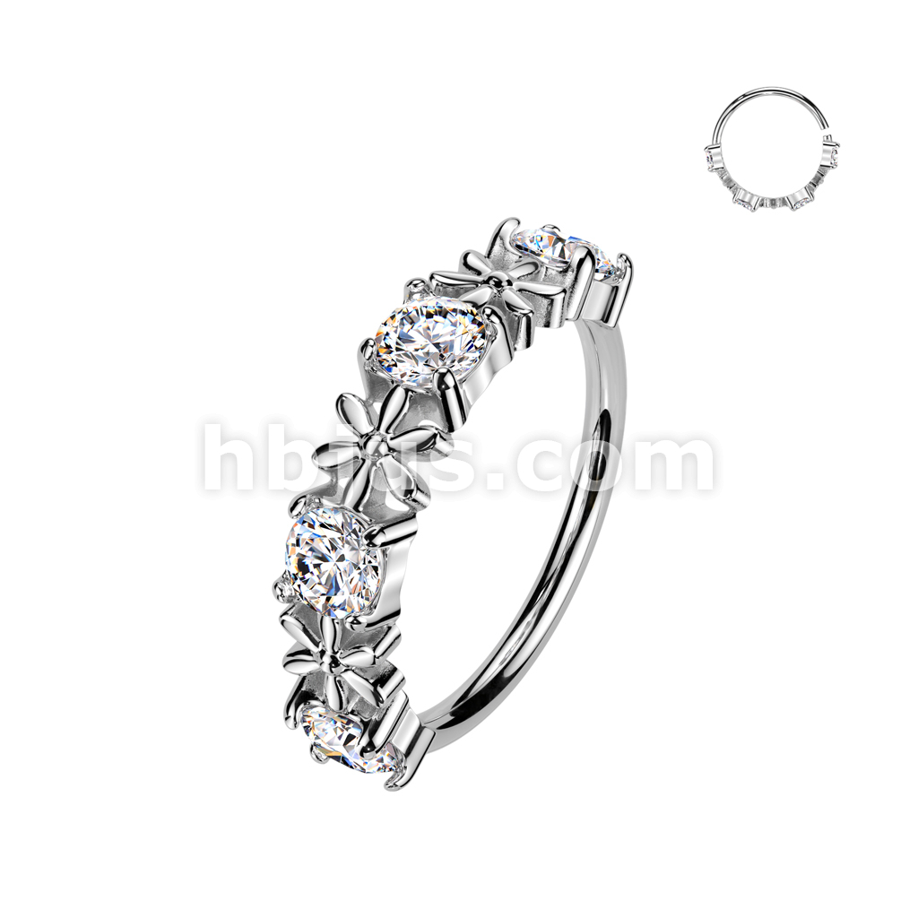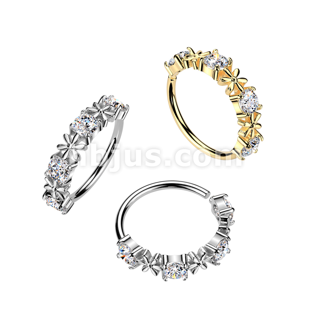Flower In Between Prong Set CZ Bendable Nose Hoop