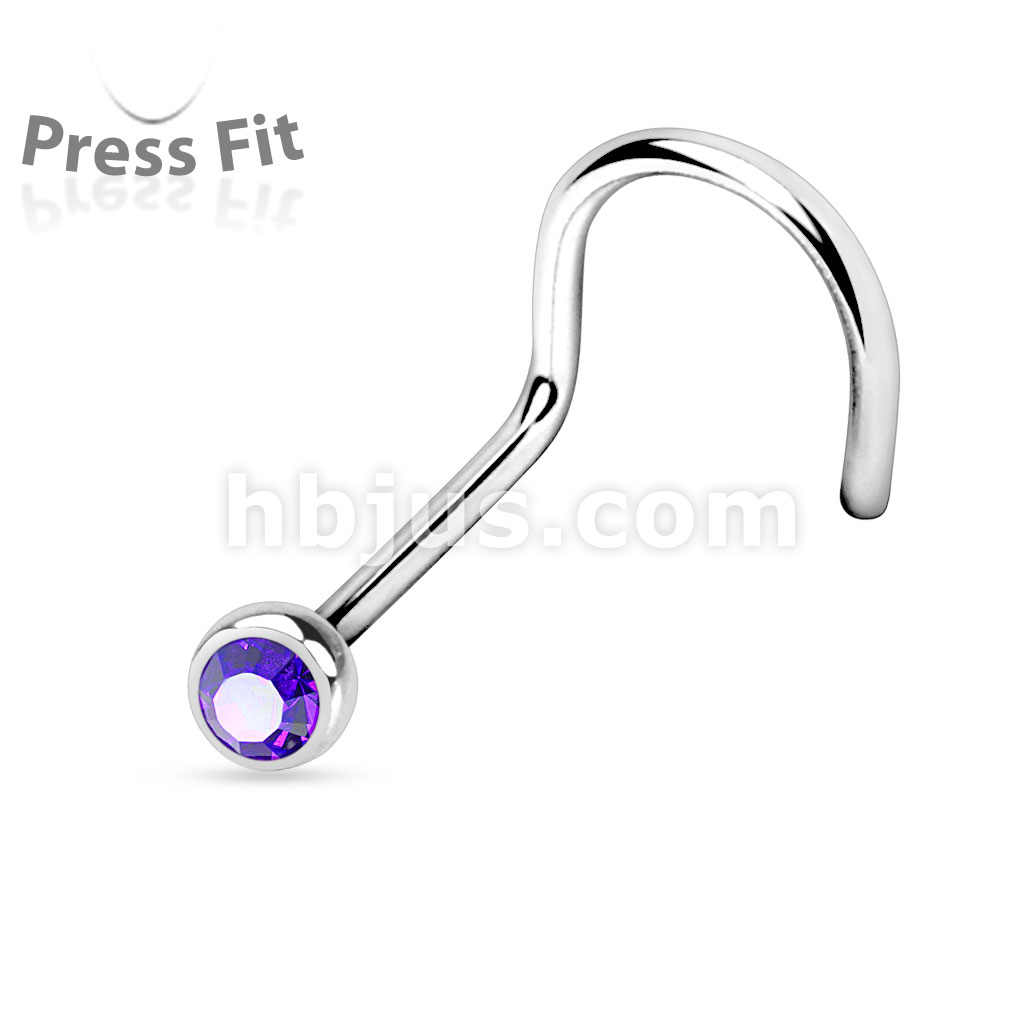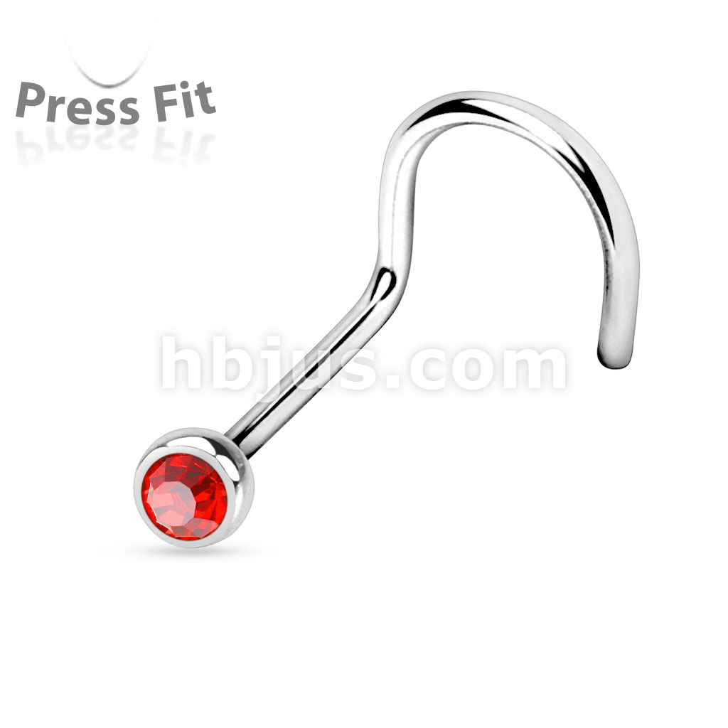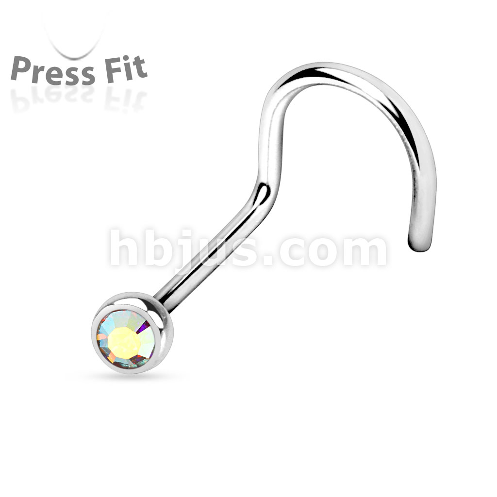 Press Fit Gem Ball 316L Surgical Steel Nose Screw Rings