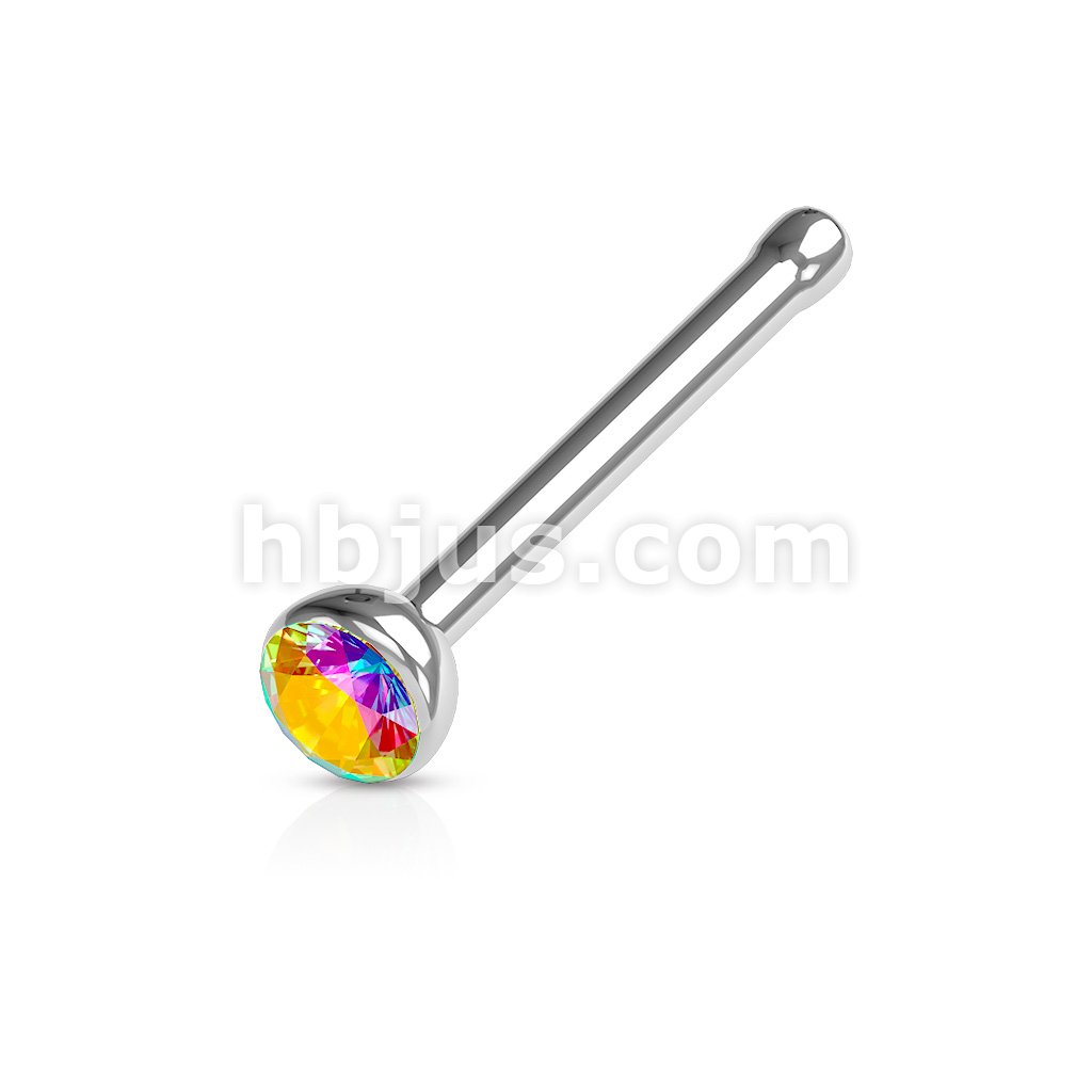 316L surgical Steel Nose Stud Ring with Gem Set Half Ball Top
