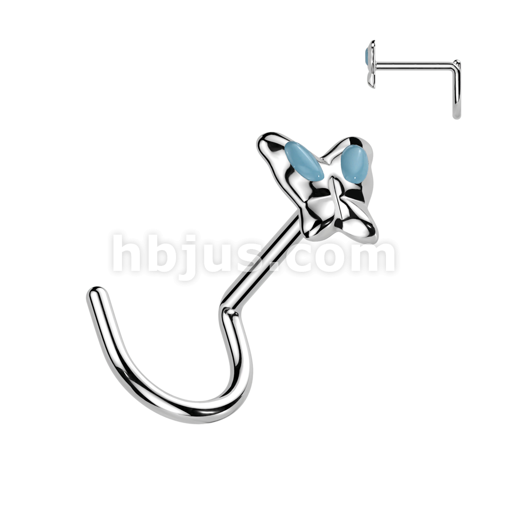 Butterfly 3mm Gemmed With 20GA .925 Sterling Silver Nose Screw