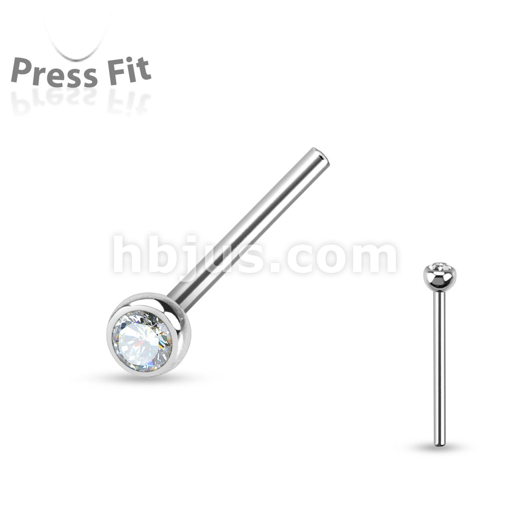 200 Pcs of 316L Surgical Steel 1/2" Fishtail Autoclavable Nose Stud with 2mm Clear Gem Ball Top
