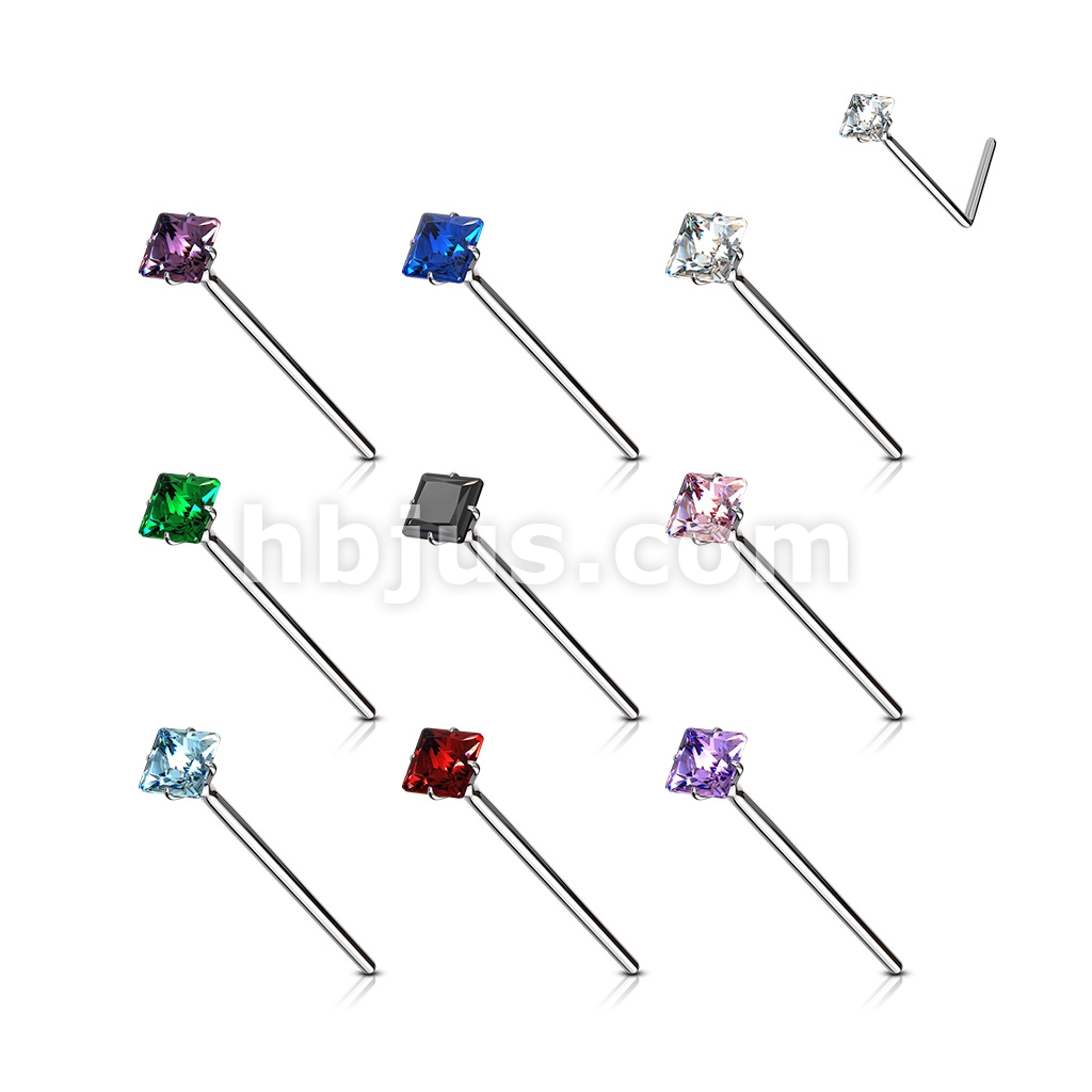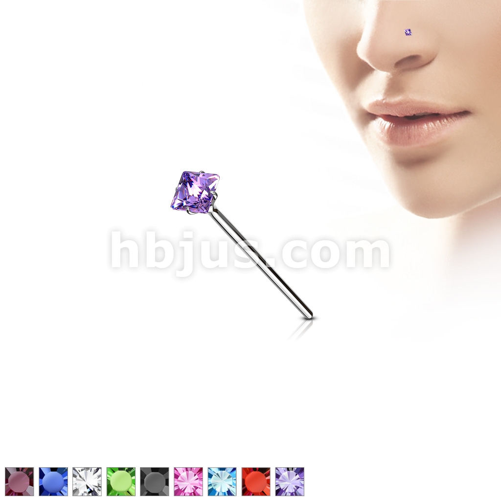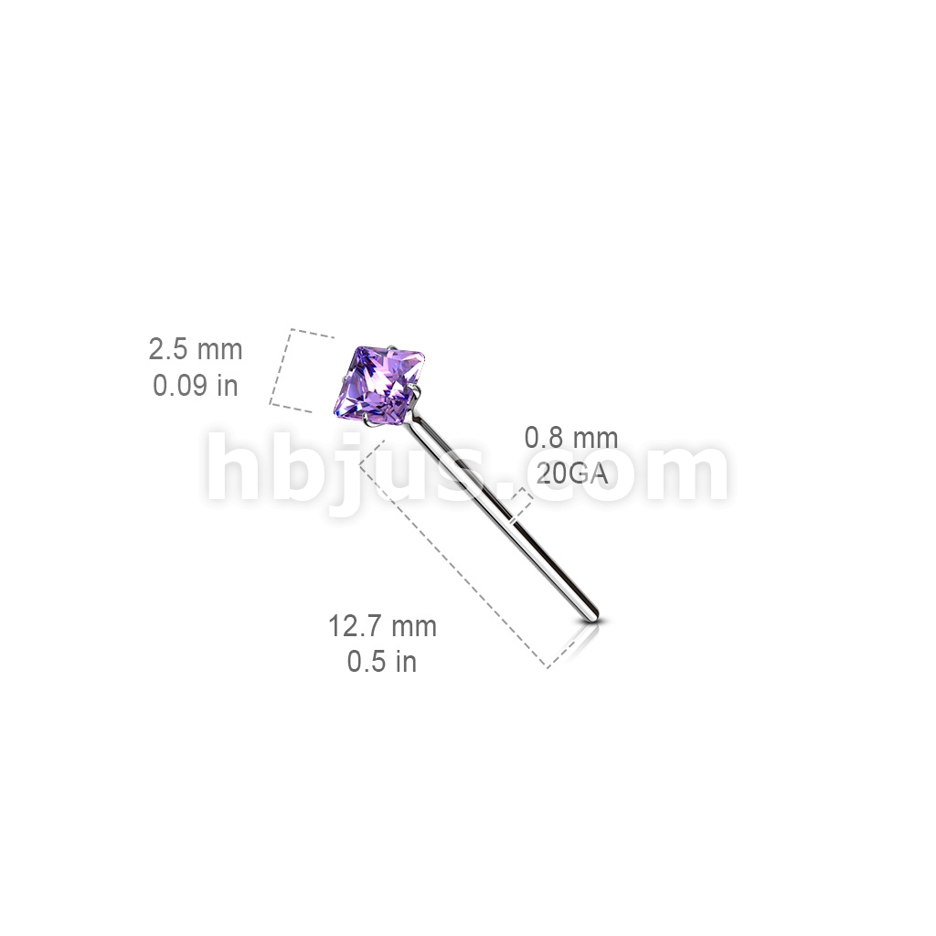 20GA .925 Sterling Silver Bendable Nose Ring With 2.5mm Square CZ