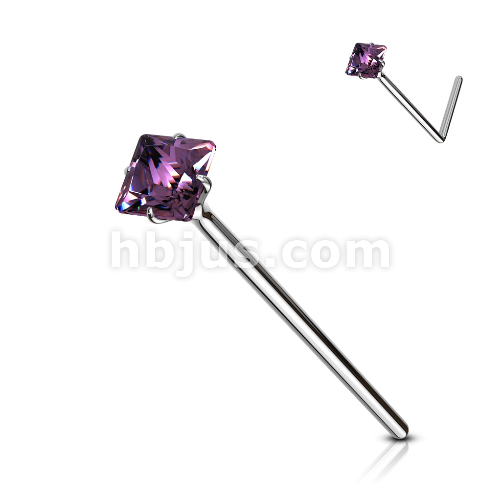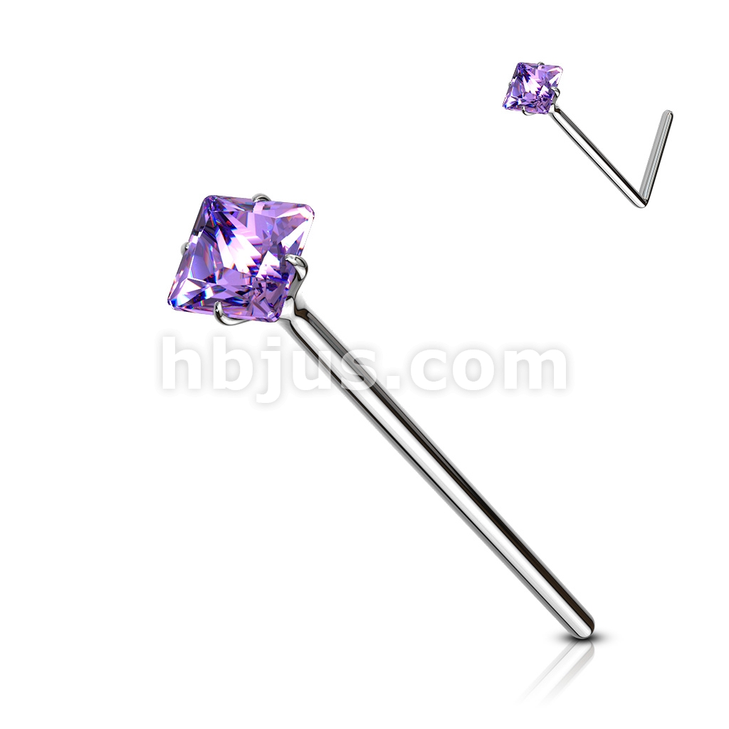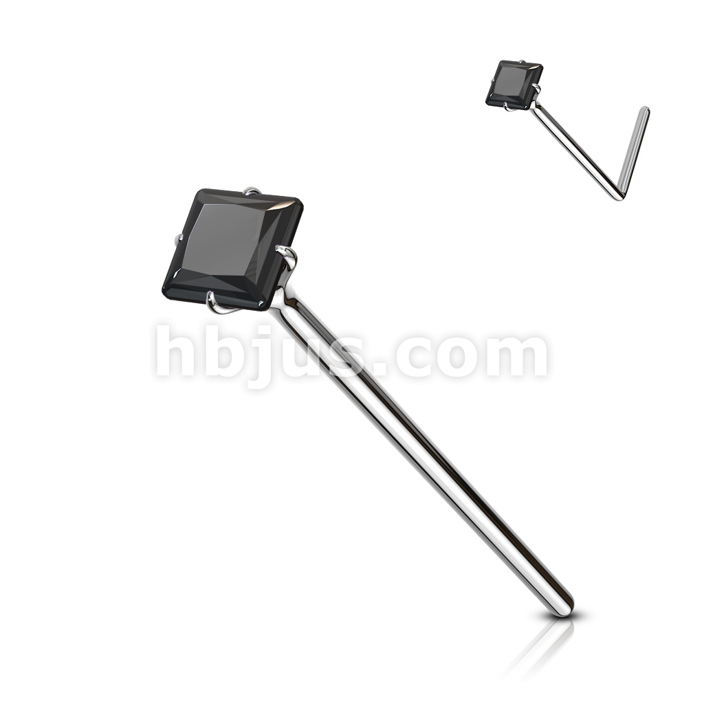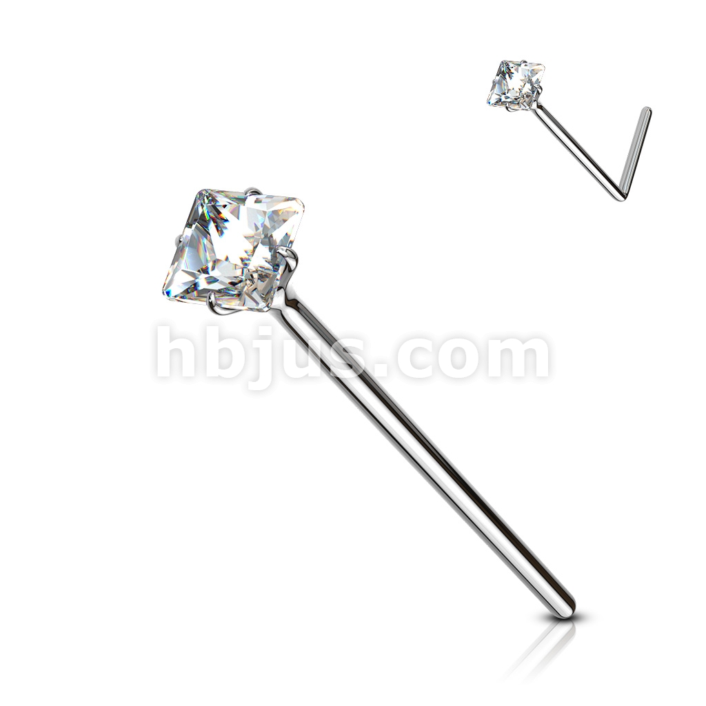 20GA .925 Sterling Silver Bendable Nose Ring With 2.5mm Square CZ