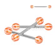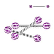 24 Pc Assorted Pack of 316L Surgical Steel Barbells With Candy Striped Acrylic Balls