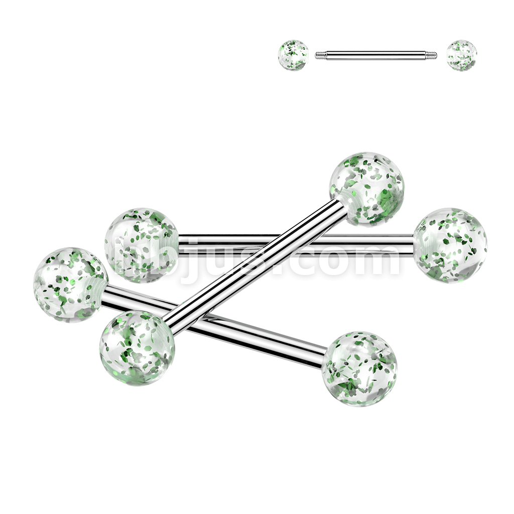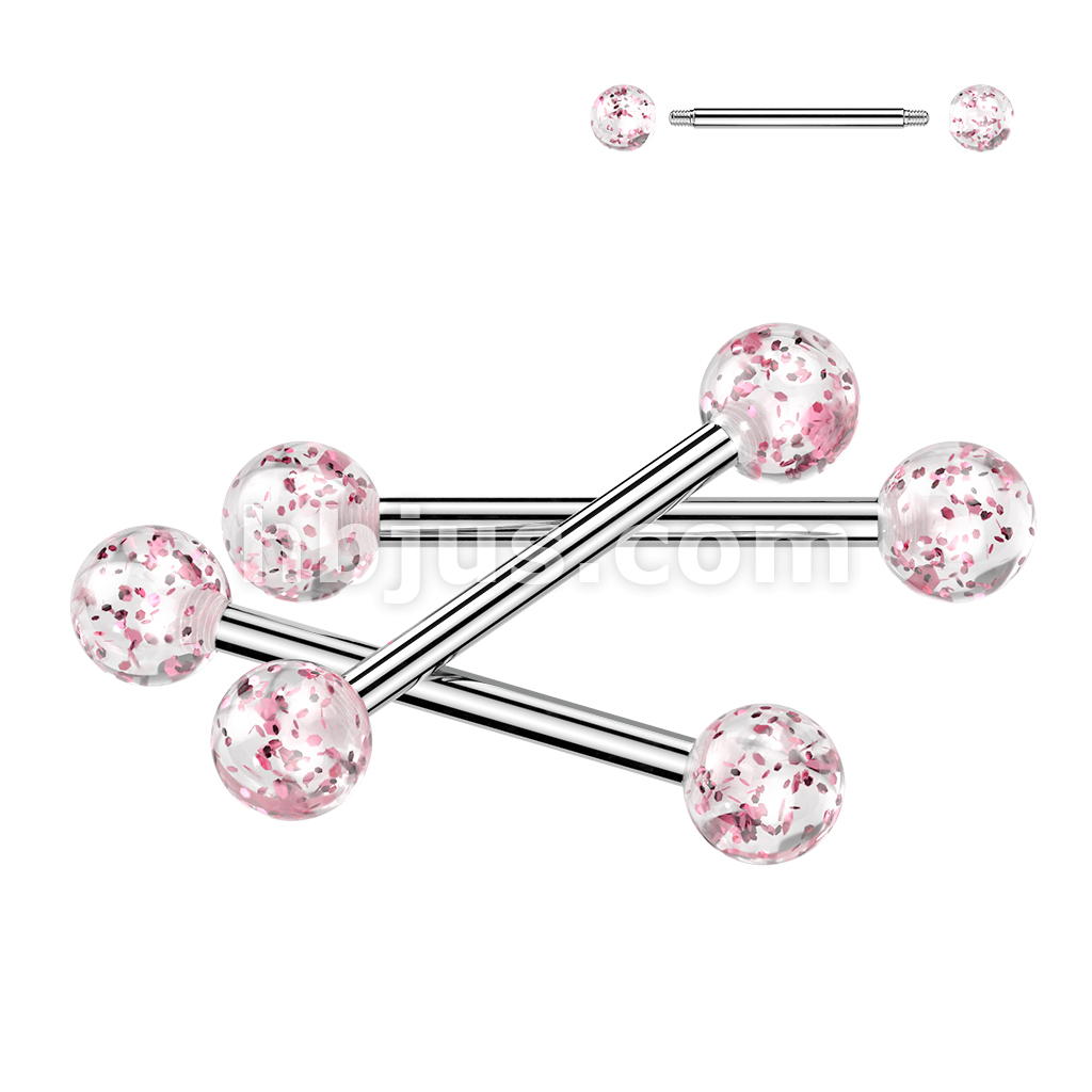 24 Pc Assorted Pack of 316L Barbells With Acrylic Glitter Balls