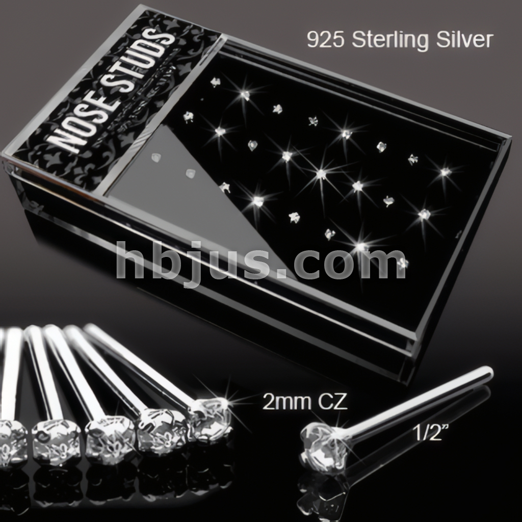 You'll receive a 24 pieces of 20G .925 Sterling Silver Clear CZ Bendable Fishtail Nose Rings.