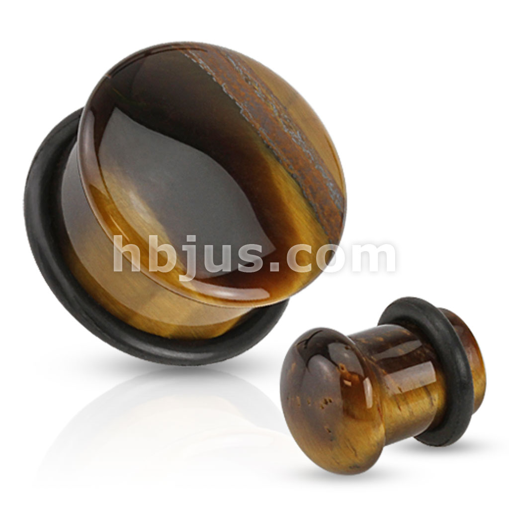 Tiger Eye Semi Precious Stone Domed Single Flare Plug with O-Ring