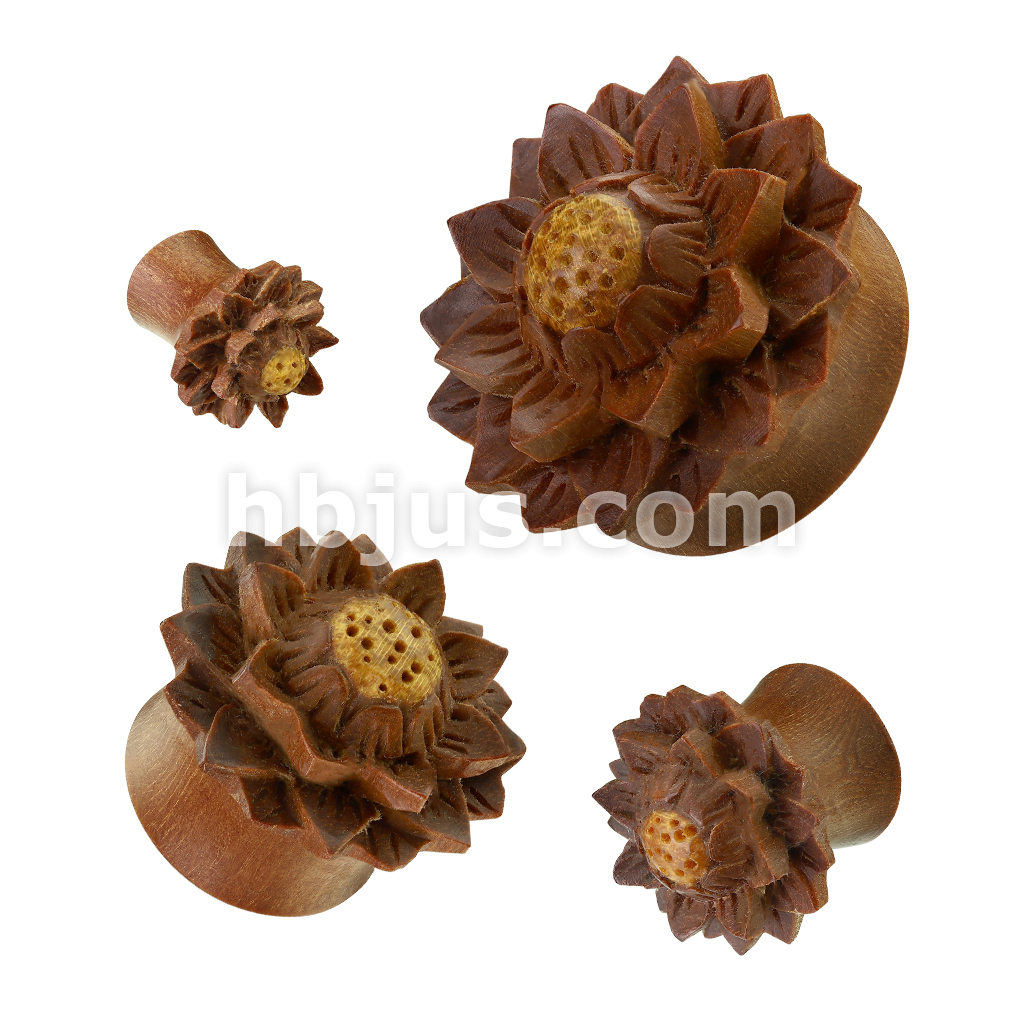 Lotus Flower Hand Carved Organic Jackfruit Tree Saddle Fit Plug