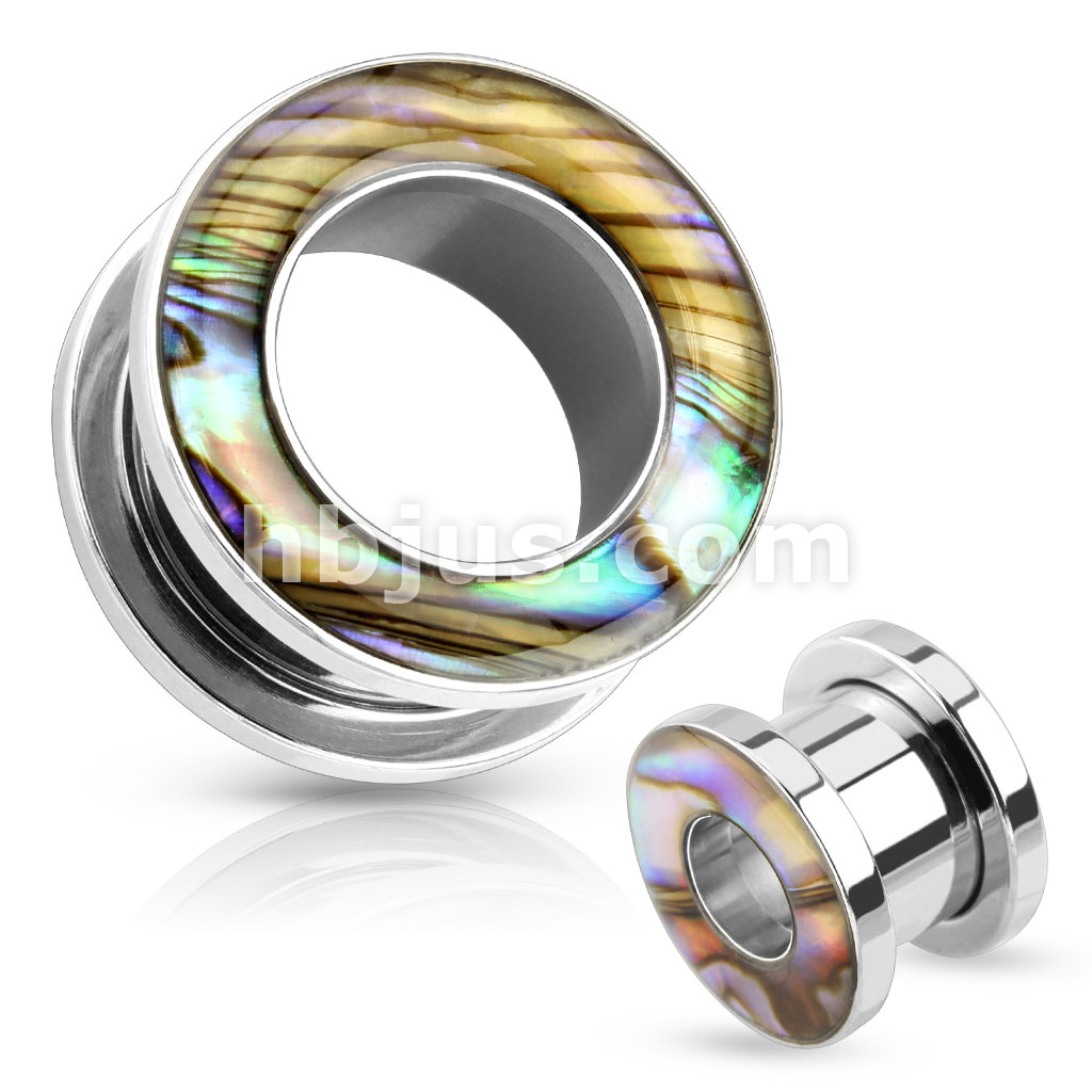 Mother of Pearl Rimmed 316L Surgical Steel Screw Fit Tunnel