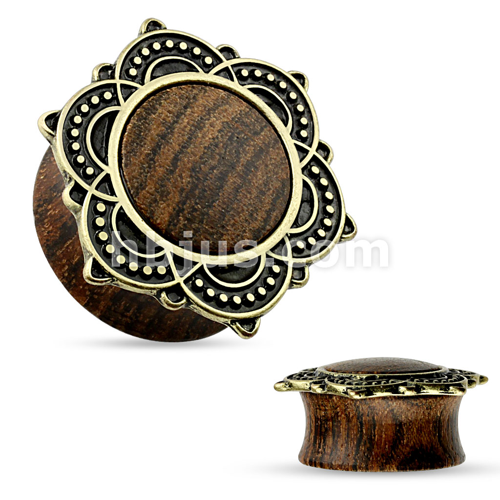 Natural Rose Wood Saddle Plug with Tribal Lotus Top