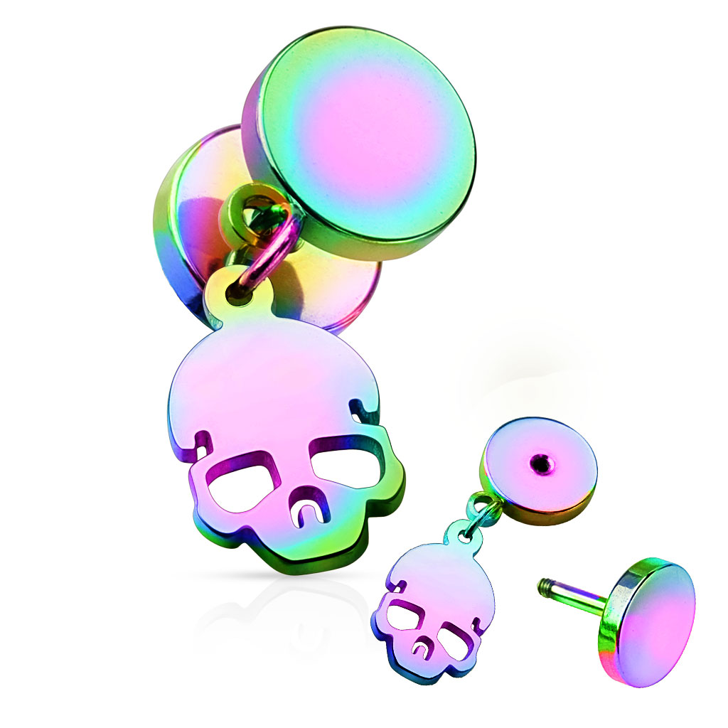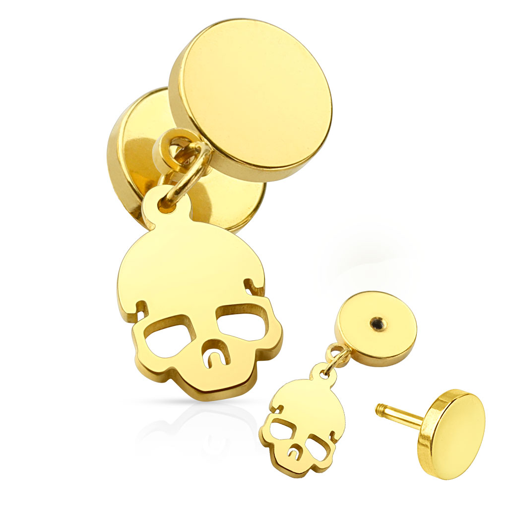 Skull Dangle 16G Fake Plug 316L Surgical Steel