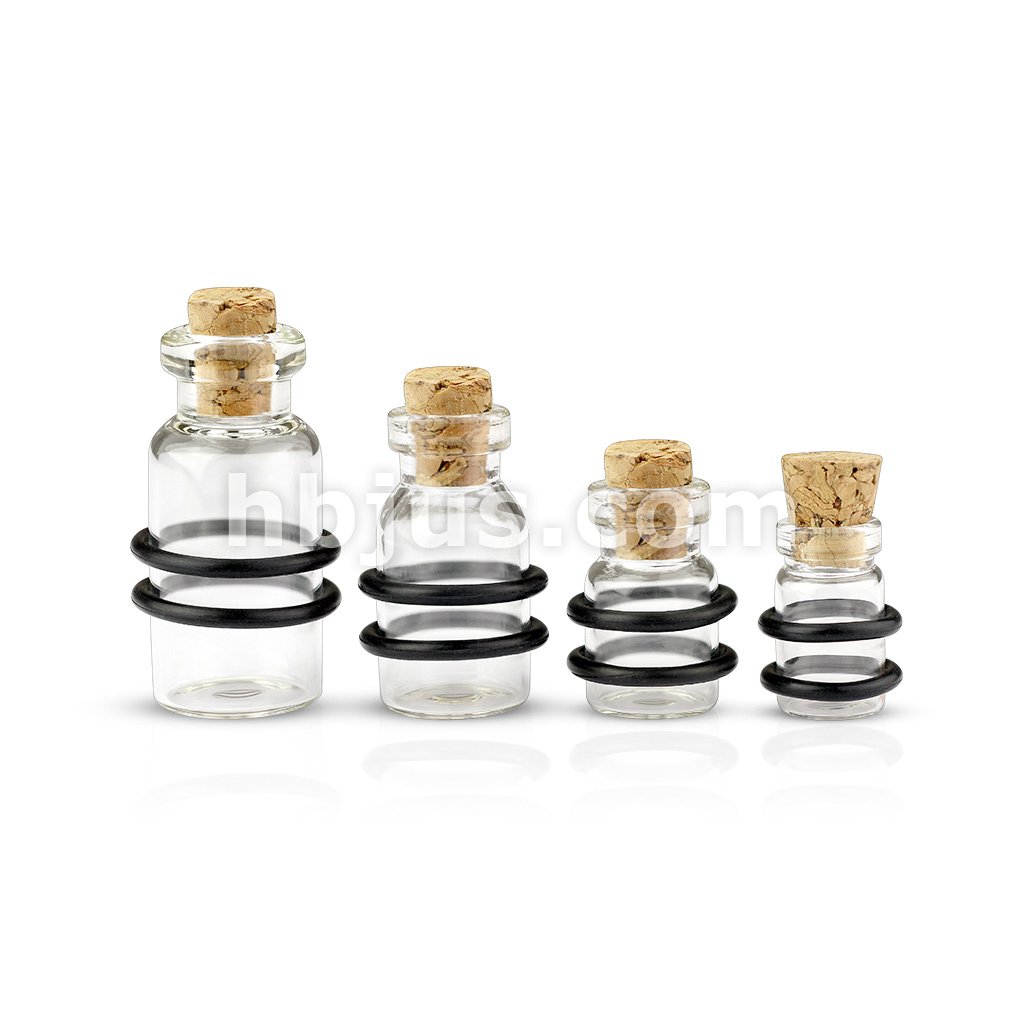 Clear Cork Bottle with 2-Black O-Rings Glass Plugs
