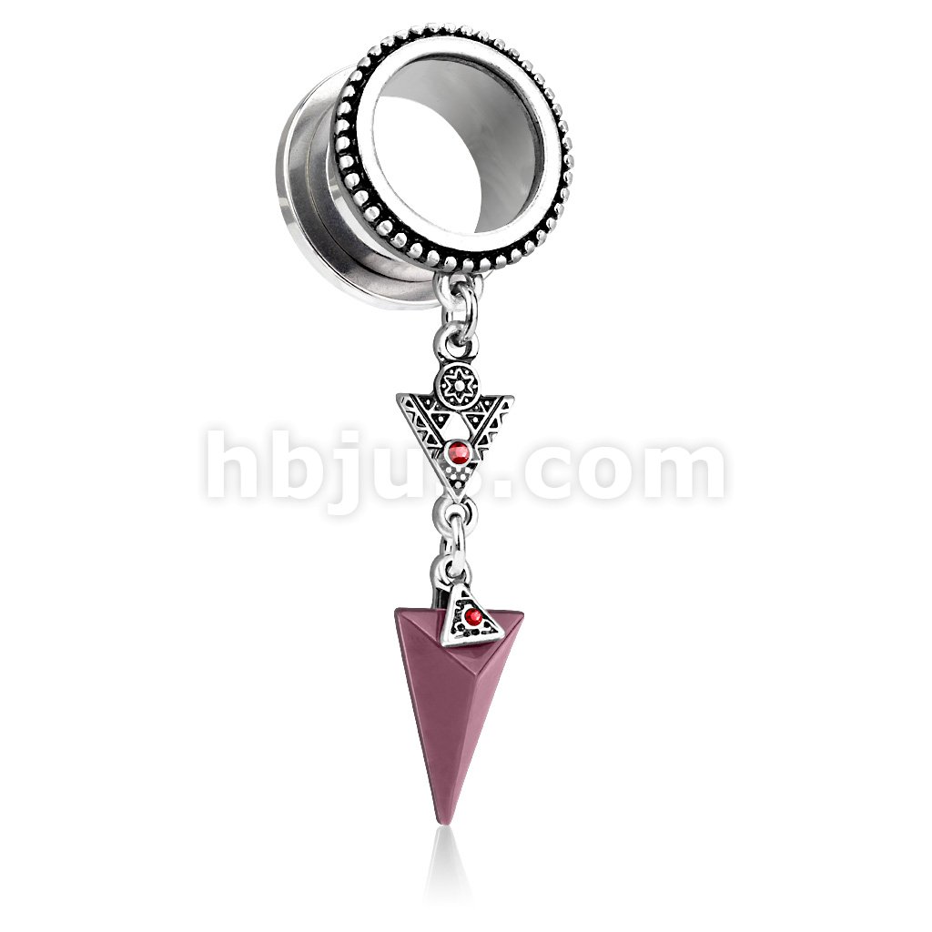 Tribal Arrow Dangle Burnished Silver Plated Beaded Edge Top 316L Surgical Steel Screw Fit Flesh Tunnels