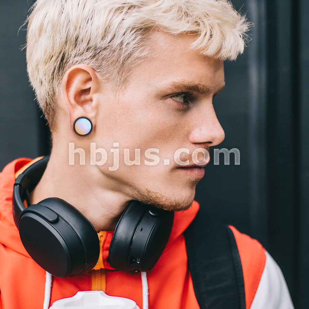 Opalite Stone Front Double Flared Ebony Wood Saddle Plugs