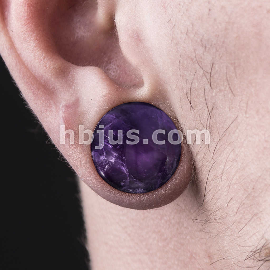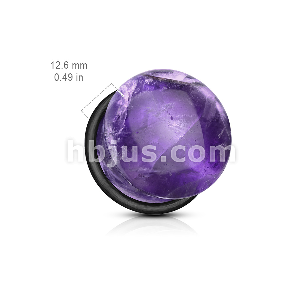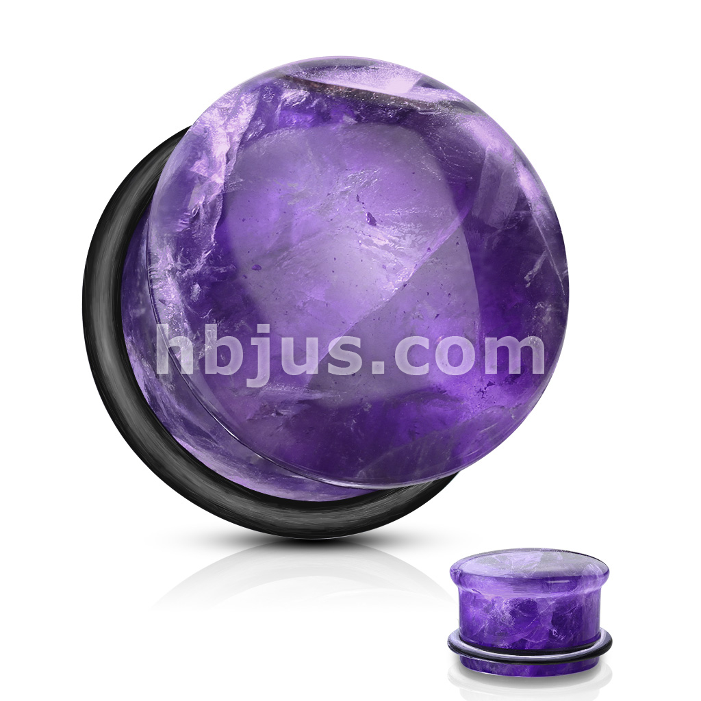 Amethyst Semi Precious Stone Domed Single Flare Plug with O-Ring