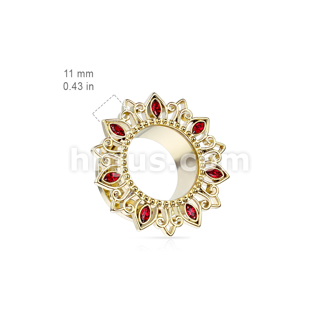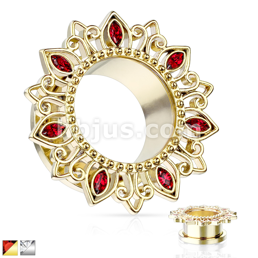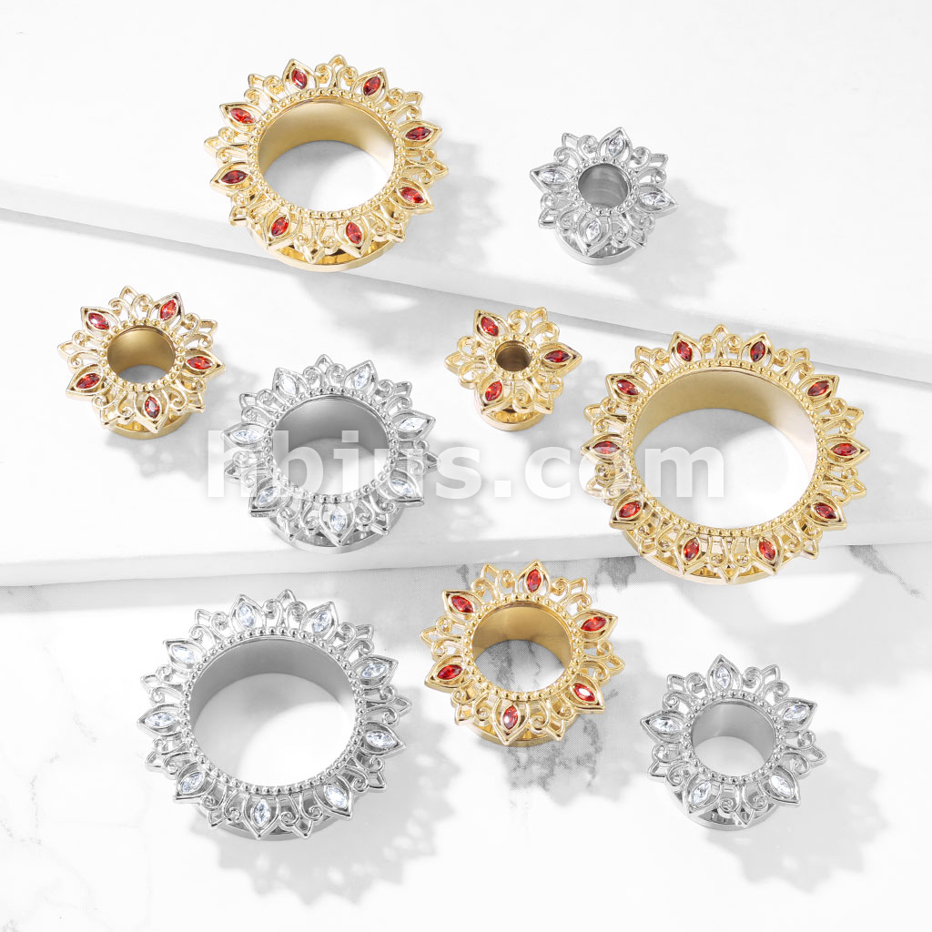 Tribal Lotus Flower with Zircon set Petals 316L Surgical Steel Screw Fit Flesh Tunnel Plugs
