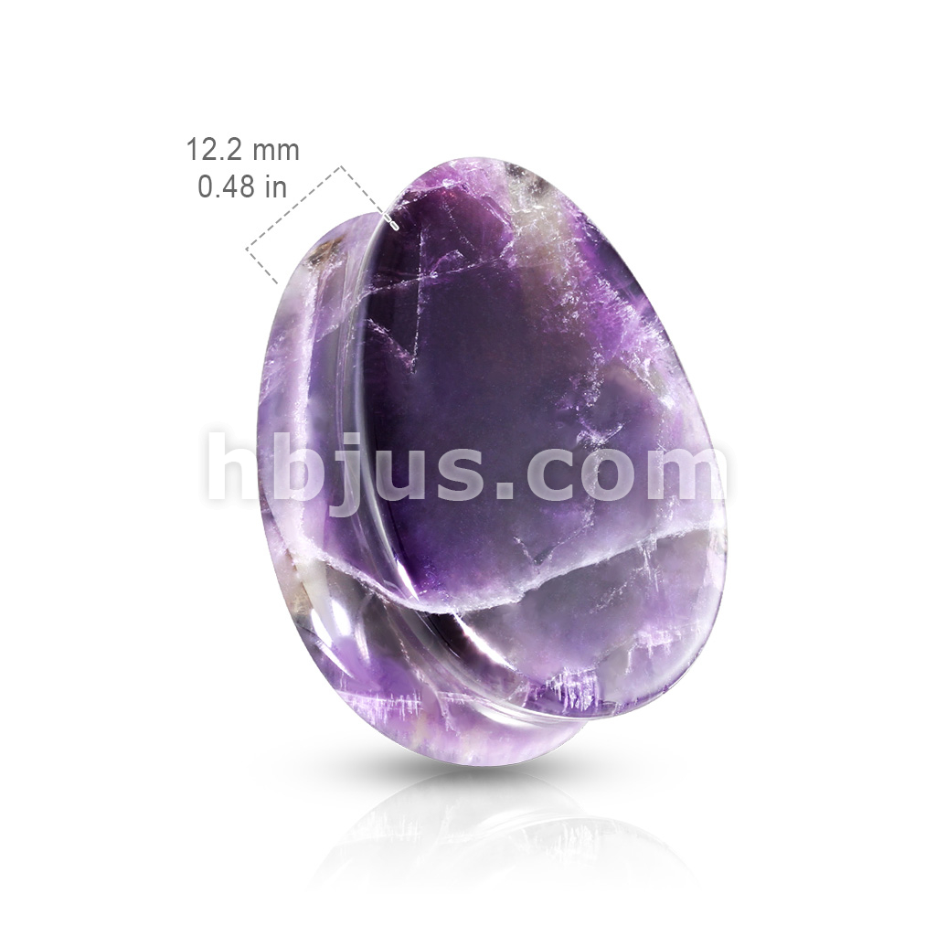Tear Drop Semi Precious Amethyst Stone Double Flared Saddle Plugs