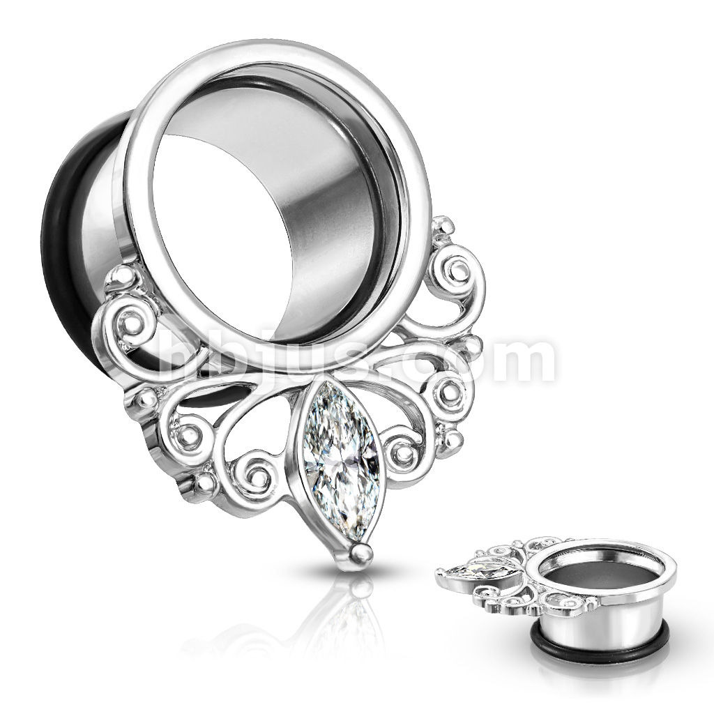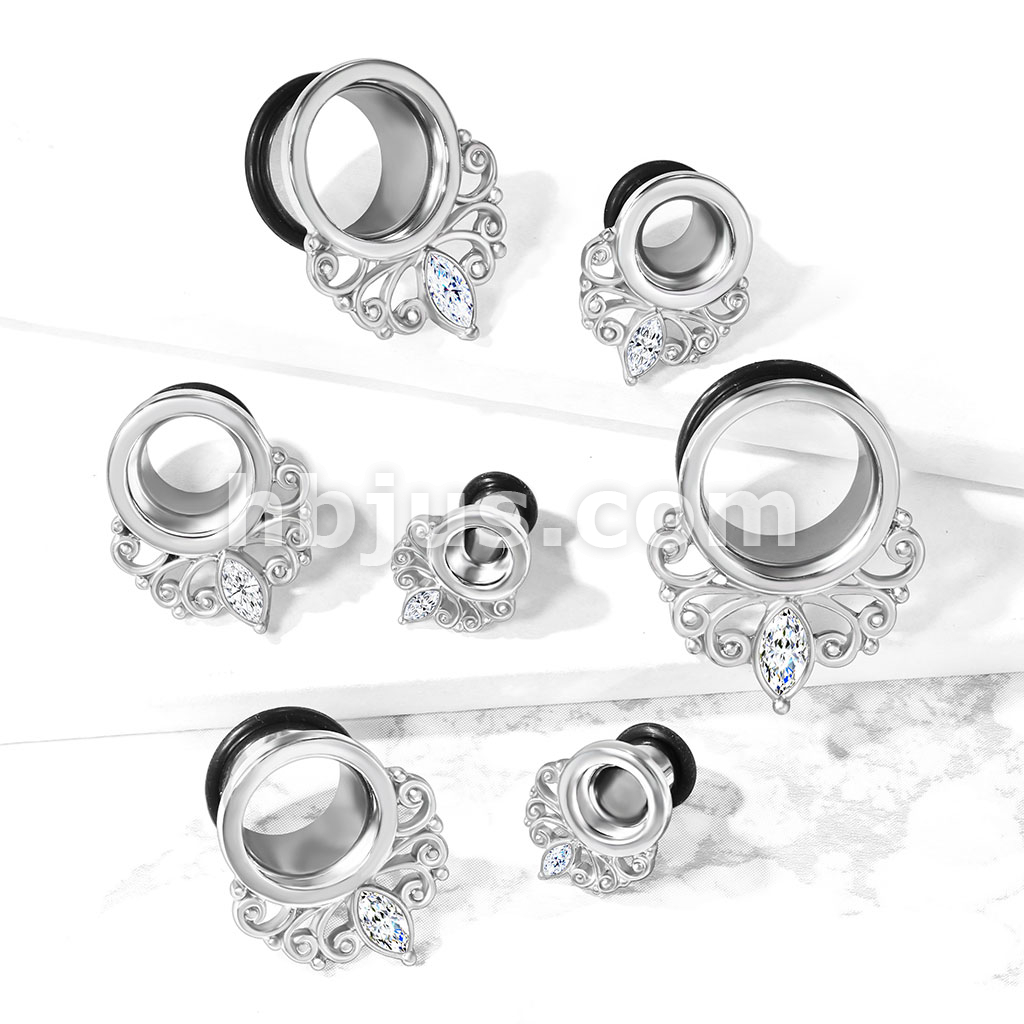 Marquise Crystal Vintage Filigree Drop Single Flare Tunnel with O-Ring