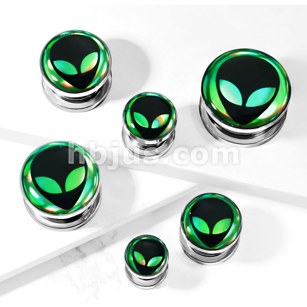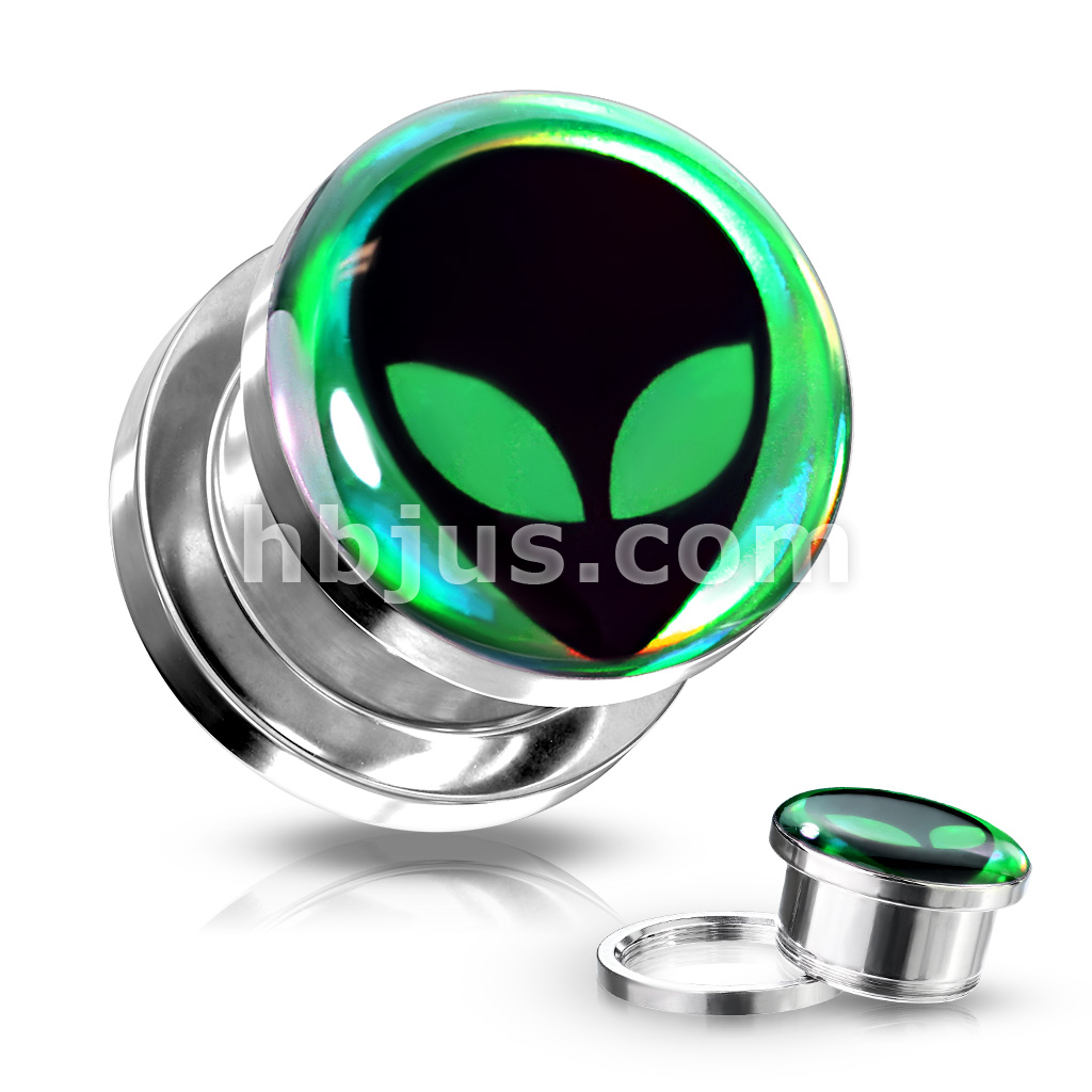 Alien Hologram 316L Surgical Steel Screw Fit Flesh Tunnel Plugs