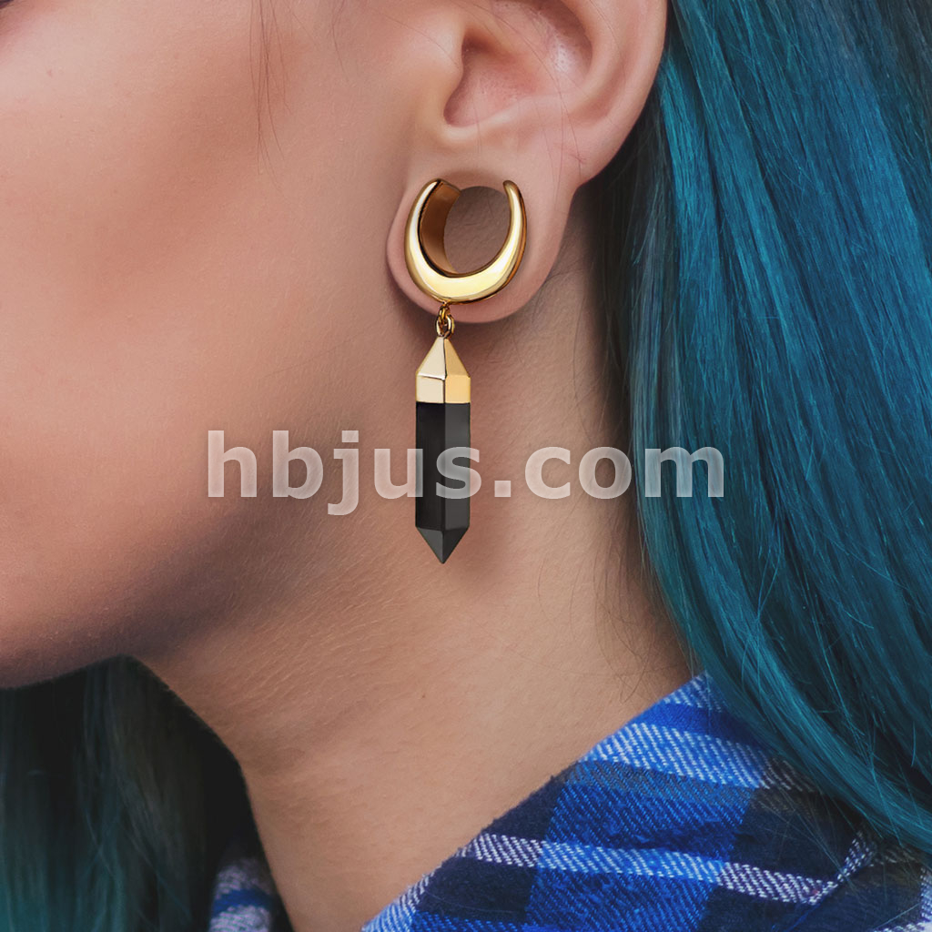 Saddle Spreader With Synthetic Onyx Dangle PVD Gold Over 316L Surgical Steel