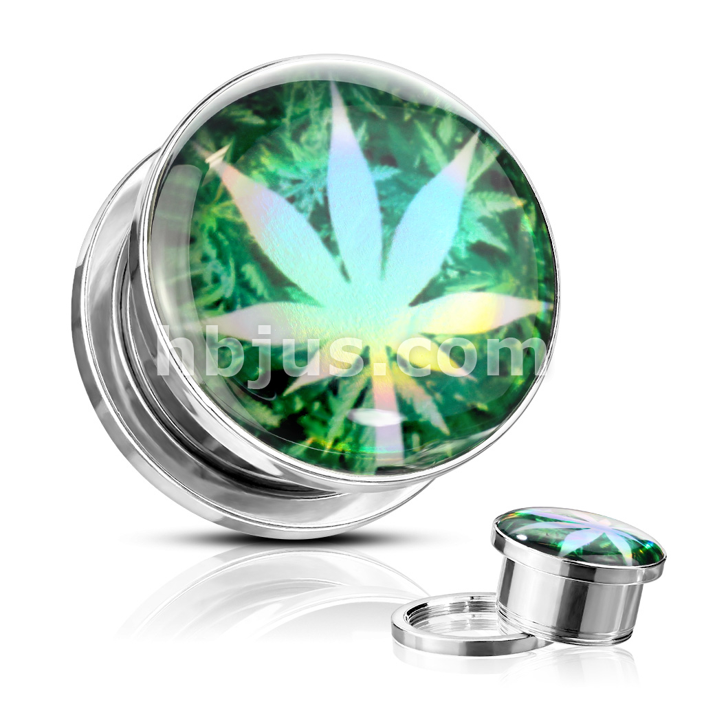 Pot Leaf Hologram 316L Surgical Steel Screw Fit Flesh Tunnel Plugs