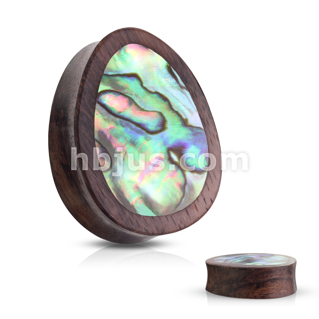 Abalone Inlaid Tear Drop Organic Sono Wood Saddle Plugs