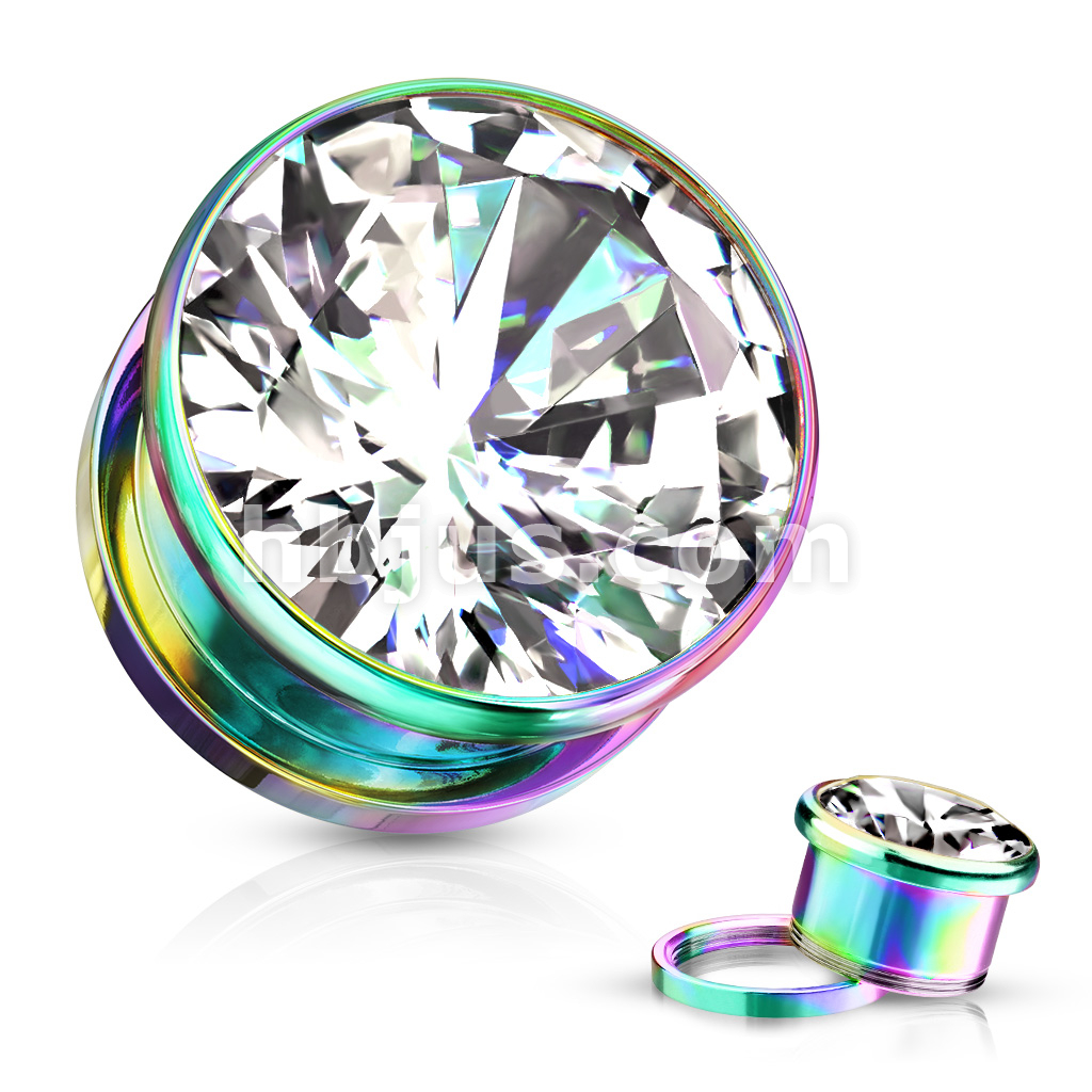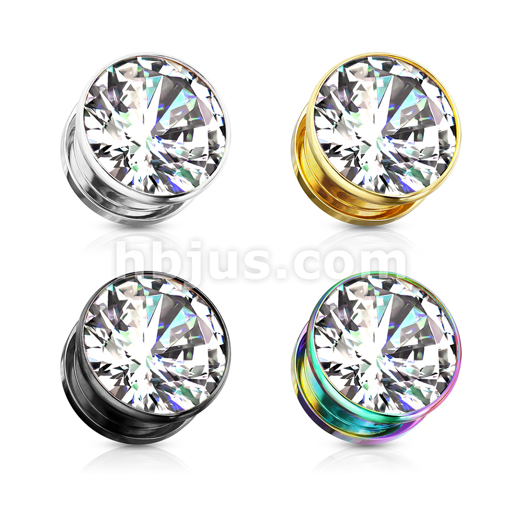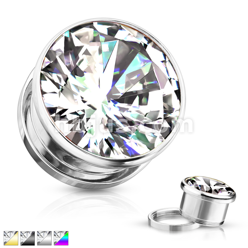 Zircon Bezel Set 316L Surgical Steel Screw Fit Flesh Tunnels