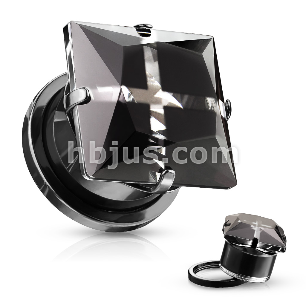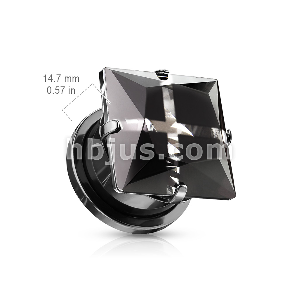 Black Square Cross Puzzle Zircon Front PVD Black over 316L Surgical Steel Screw Fit Flesh Tunnels