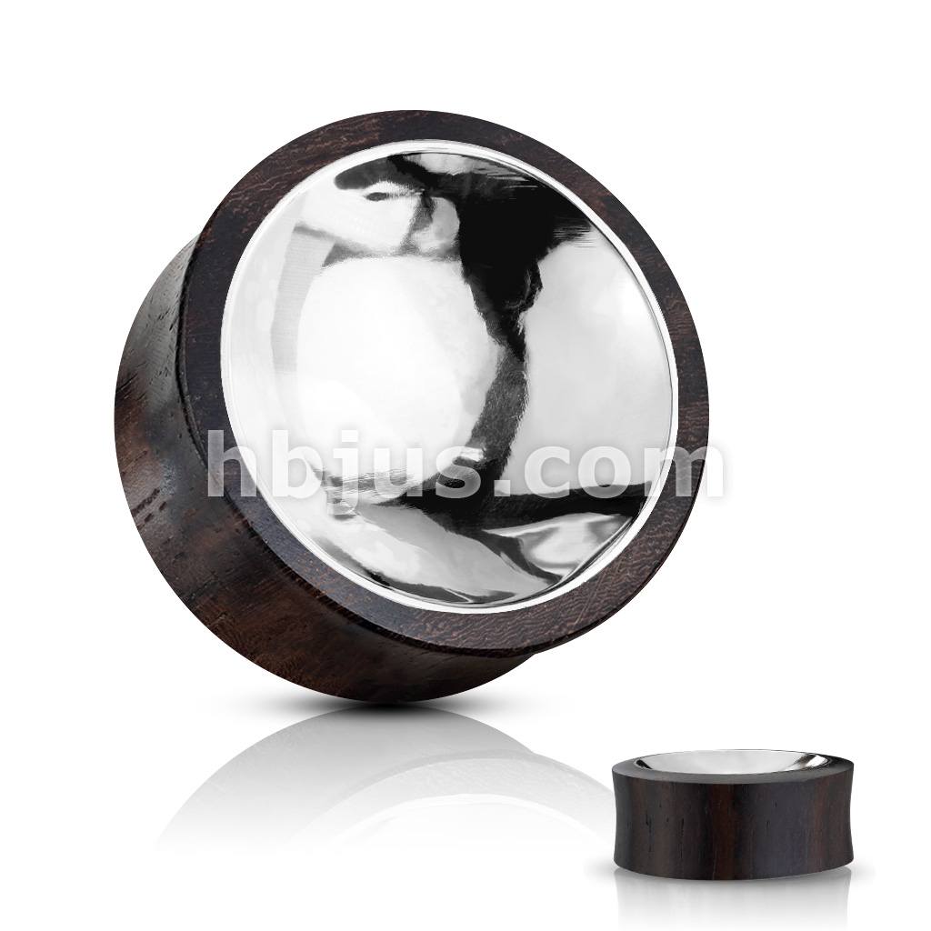 Organic Sono Wood Saddle Plug with Concaved Silver Tin Center on Both Sides